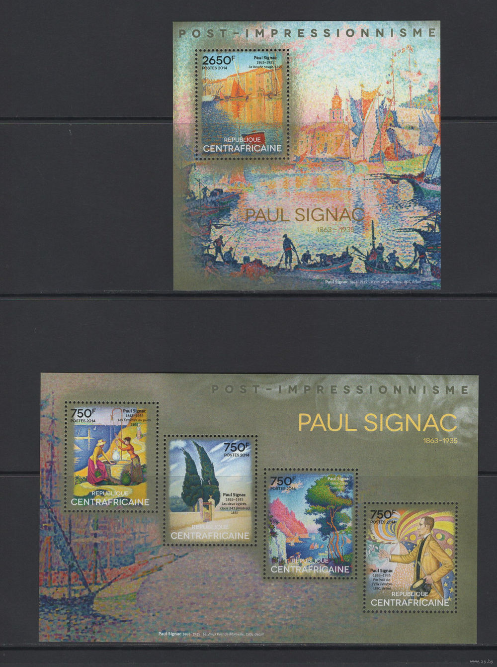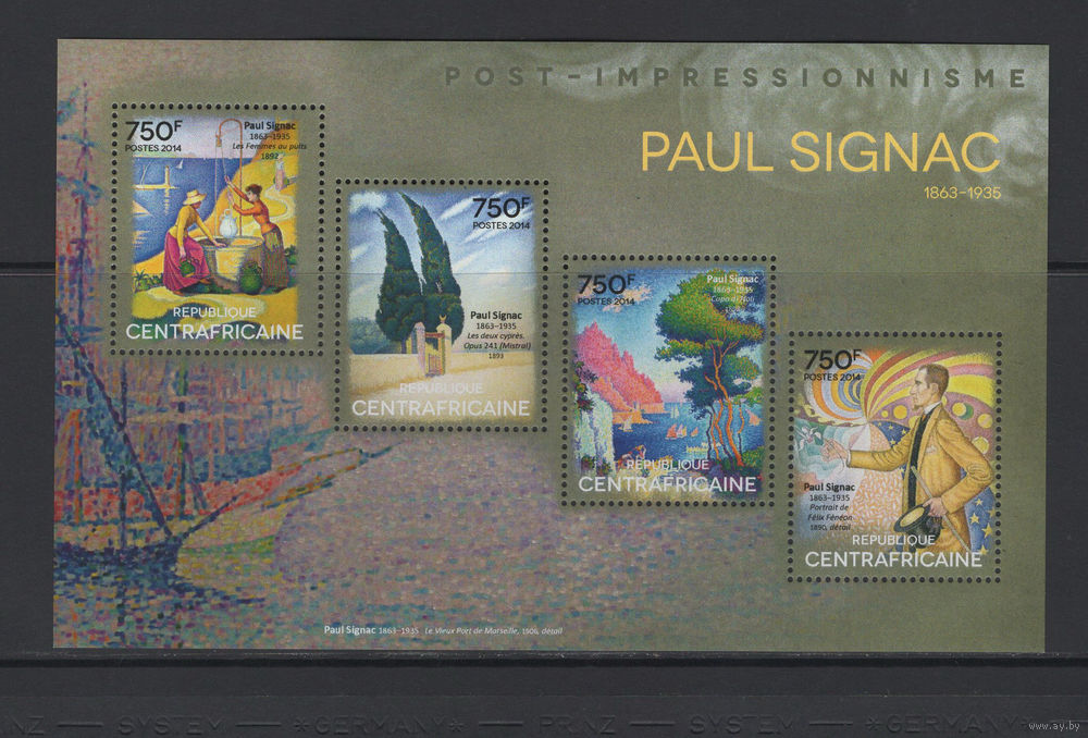 Центрально-Африканская Республика 2014** Искусство Живопись Картины Французский художник-неоимпрессионист Поль Синьяк