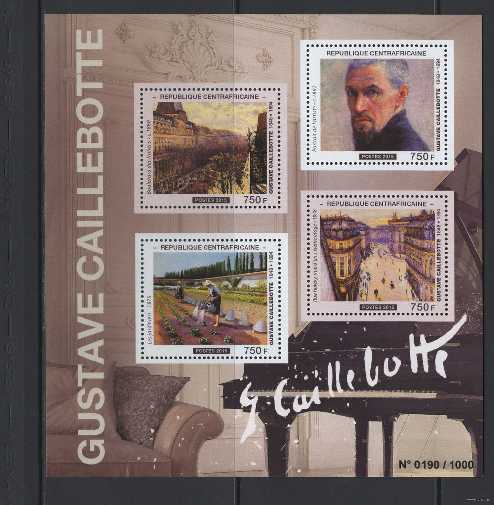 Центрально-Африканская Республика 2015** Искусство Живопись Картины Французский живописец импрессионист Гюстав Кайботт
