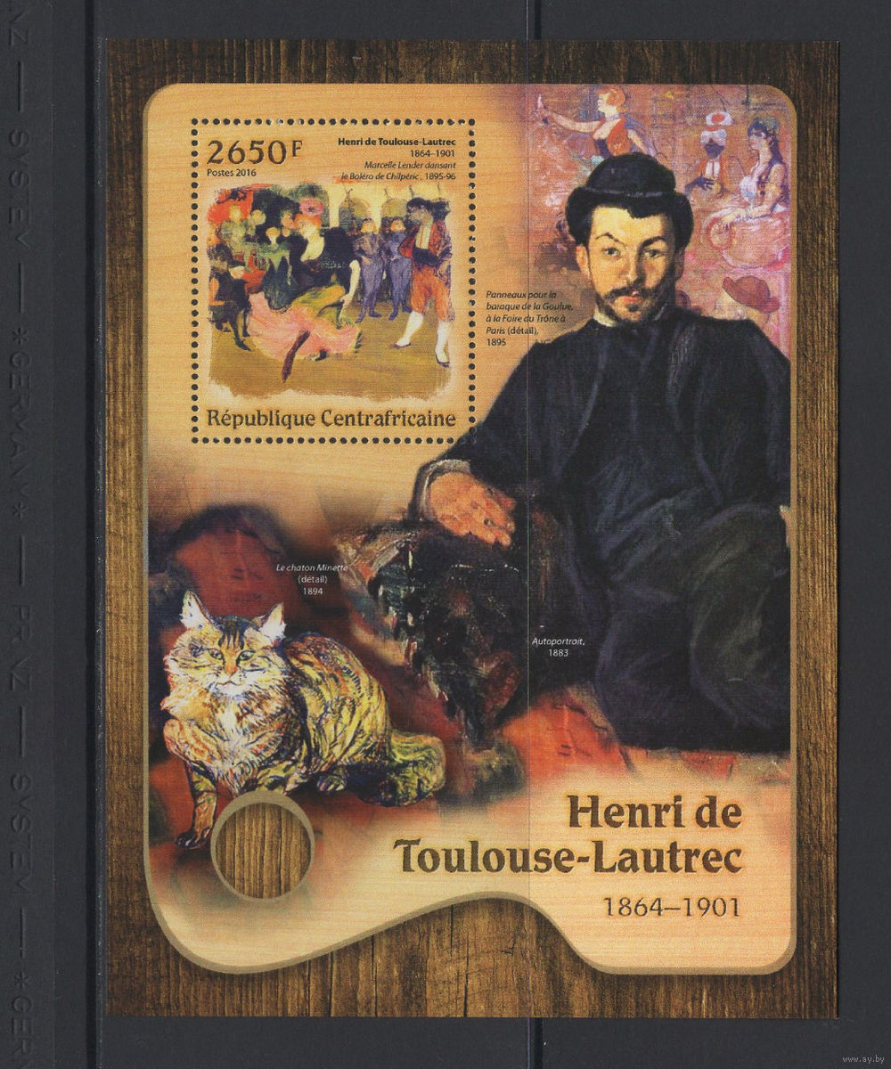 Центрально-Африканская Республика 2016** Искусство Живопись Картины Французский живописец Анри де Тулуз-Лотрек
