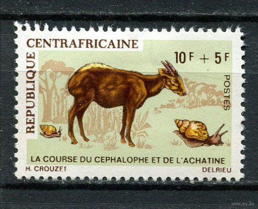 Центральноафриканская Республика - 1971 - Африканская фауна 10Fr+5fr - [Mi.226] - 1 марка. MH. (Лот 93HT)-TG3P18