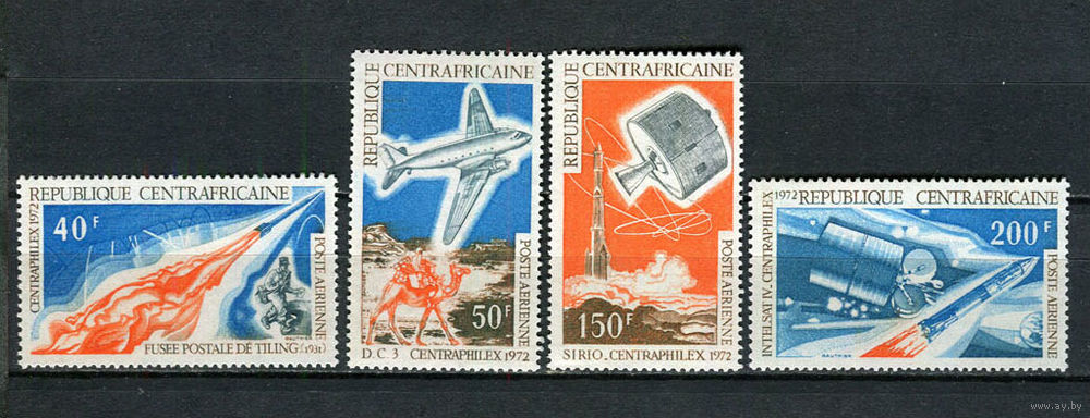 Центральноафриканская Республика - 1972 - Космос, авиация, связь, почта. Авиамарки - 4 марки. MNH. (Лот 97HT)-TG3P18
