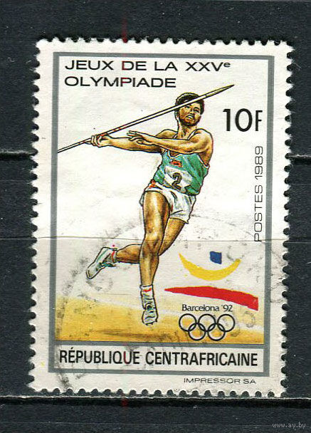Центральноафриканская Республика - 1990 - Летние Олимпийские игры. Метание копья 10Fr - [Mi.1429] - 1 марка. Гашеная. (Лот 33Js)-T25P2