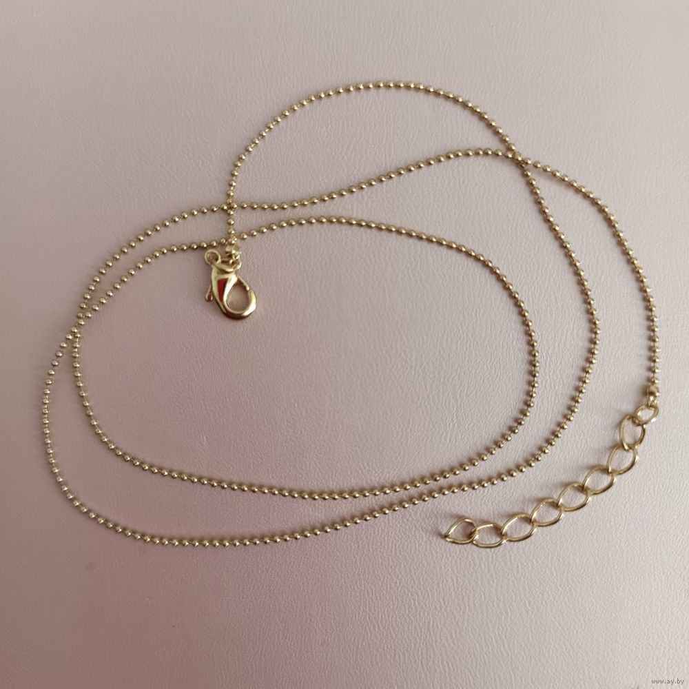 Тонкая качественная позолоченная цепочка с шариками, готовая для носки: на цепочке имеется замочек-карабин и удлиняющая цепочка 2.5 см (1 дюйм). Длина цепочки без удлинителя - 45 см