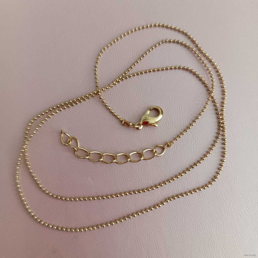 Тонкая качественная позолоченная цепочка с шариками, готовая для носки: на цепочке имеется замочек-карабин и удлиняющая цепочка 2.5 см (1 дюйм). Длина цепочки без удлинителя - 45 см