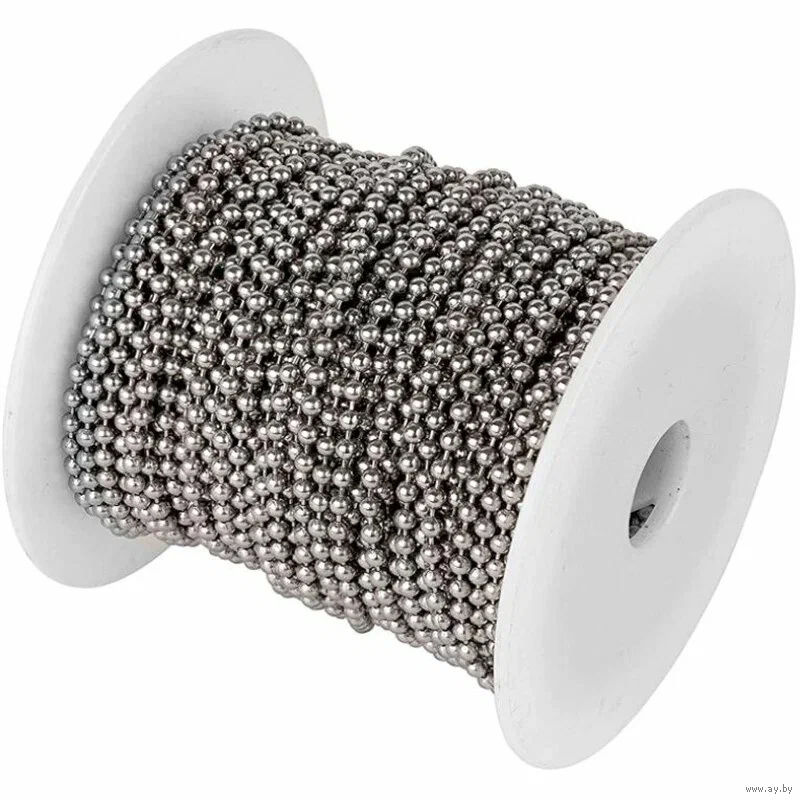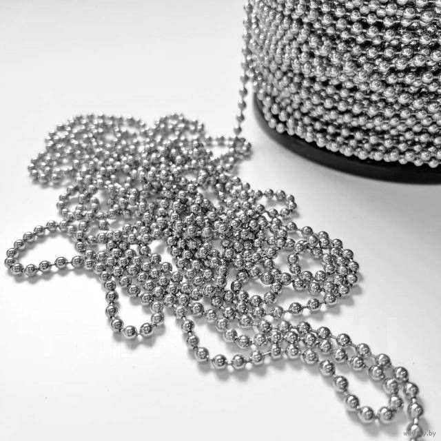Цена за метр! Почта от 4 метров! Цепочка декоративная в форме шариков. Изготовлена из качественной стали. Используется для рукоделия, декорирования заготовок, одежды, сумок, брелоков, новогодних украшений и т.д. Внимание! Цепочка является декоративной и не предназначена для использования её при воздействии силовых нагрузок. Вид цепочки: объёмное шарообразное плетение. Диаметр бусины: 3,2 мм. В комплекте замочки - 1 шт. на метр.