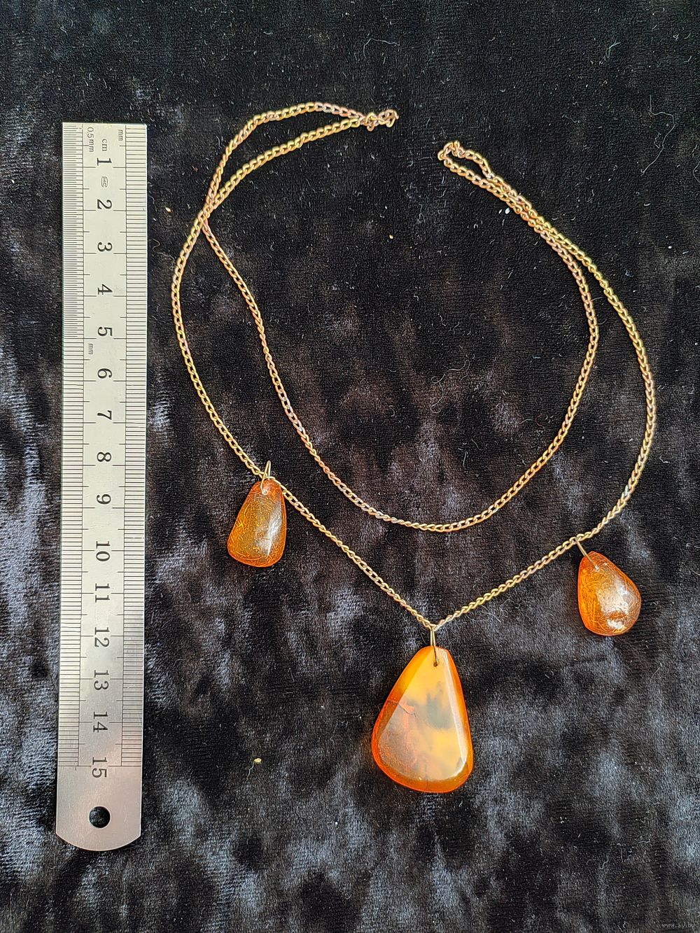 Цепочка с тремя полвесками из янтаря СССР