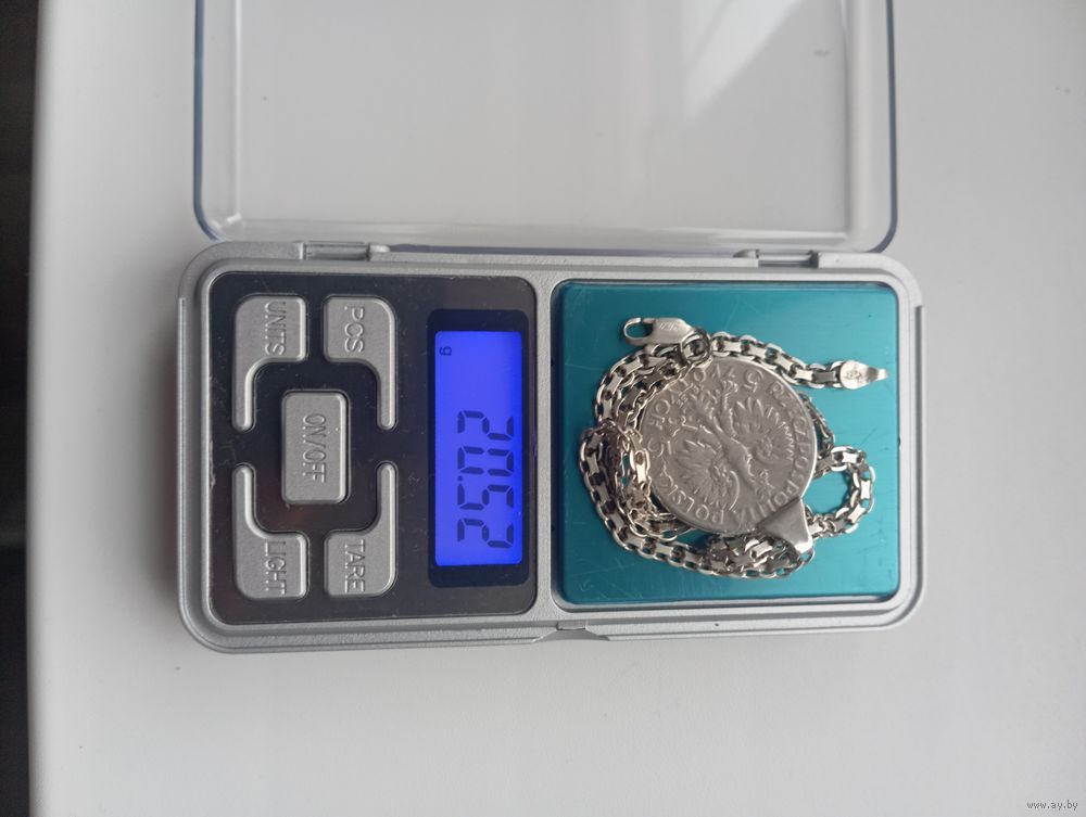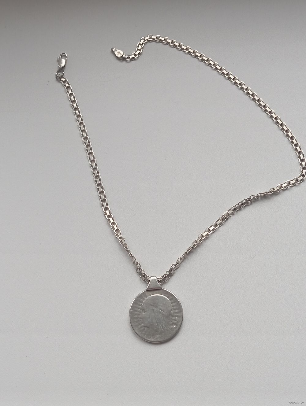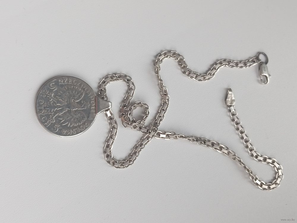 | Цепочка серебряная 925пр.Кулон из монеты 5 злотых Ядвига 750пр.Соединительное кольцо коробинчика с цепочкой металл. | |