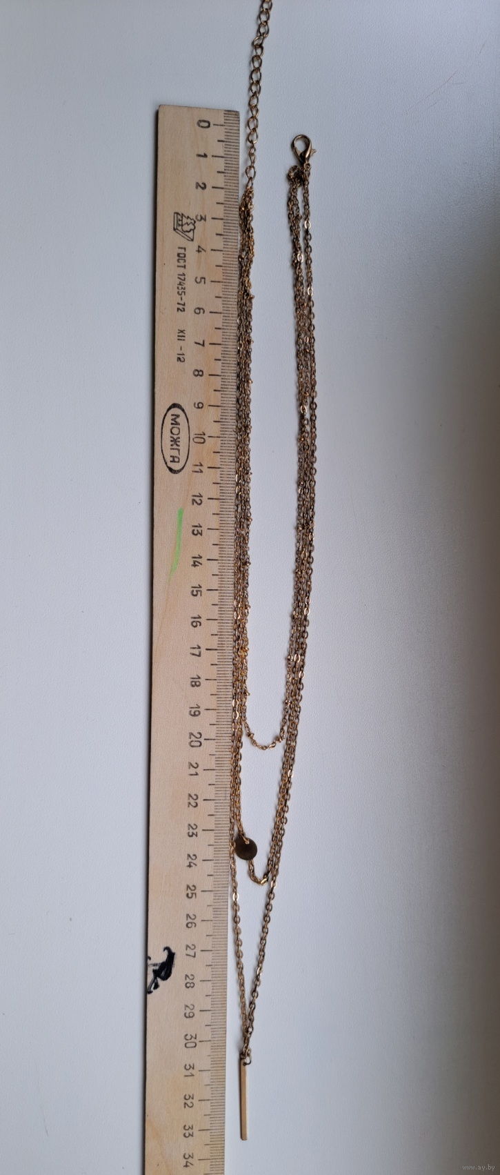 Цепочка тройная под золото (бижутерия), новая, длина-33,5см+3см(запас), Китай.