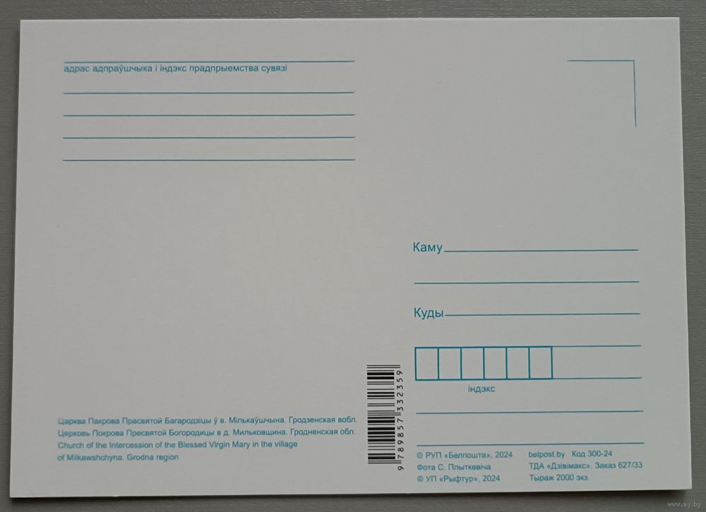 Церковь Покрова Пресвятой Богородицы, д.Мильковщина. Открытка, глянец