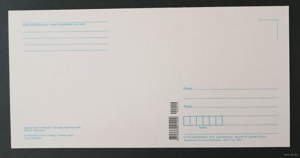 Оплата: наличные, P2P перевод на банковскую карту. Стоимость почтового отправления по РБ весом до 100 гр., обычный конверт - 4 руб., пластиковый конверт или коробка Белпочта, весом до 1 кг. - 5 руб. 50 коп. Оформление - "До востребования"