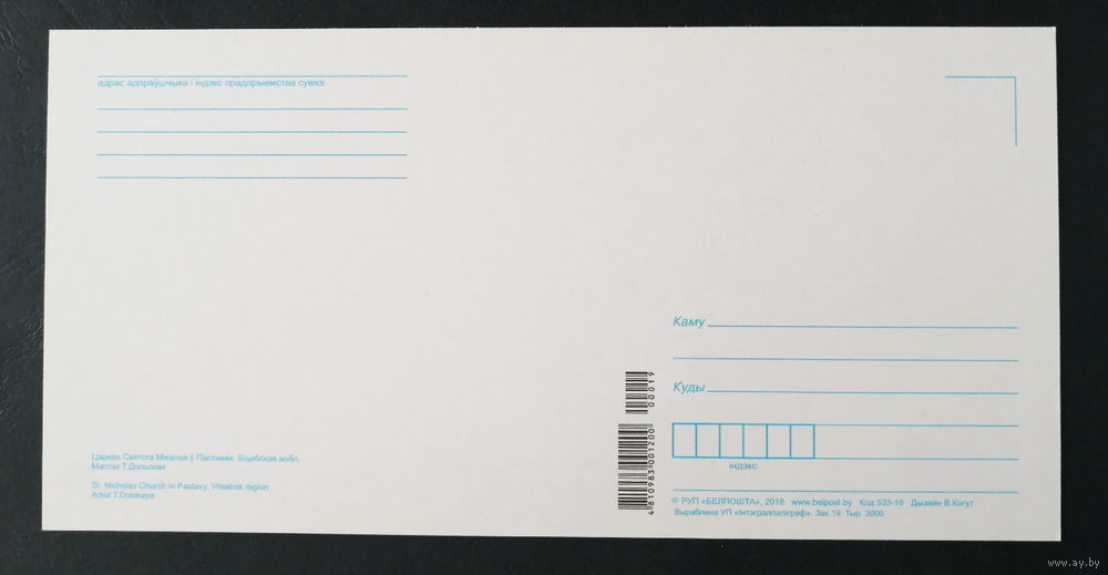 Оплата: наличные, P2P перевод на банковскую карту. Стоимость почтового отправления по РБ весом до 100 гр., обычный конверт - 4 руб., пластиковый конверт или коробка Белпочта, весом до 1 кг. - 5 руб. 50 коп. Оформление - "До востребования"