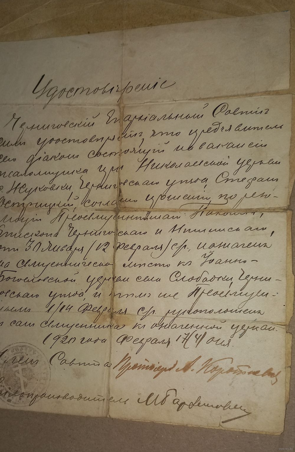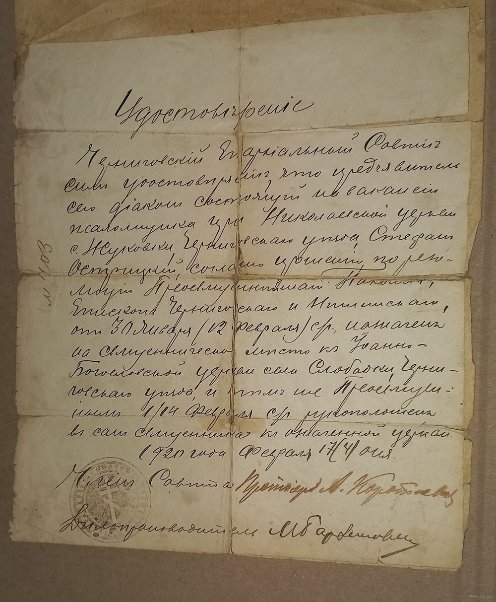 церковная справка на должность автограф 1920 Отправляю лоты только заказными письмами или ценными бандеролями. Оплата на карту
