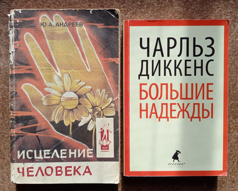 Книга "Большие надежды" в отличном состоянии, книга "Исцеление человека" в приемлемом. Дополнительные фото по запросу, все вопросы до ставки, отправлю белпочтой или европочтой, телефон в контактах, удачи в торгах!!