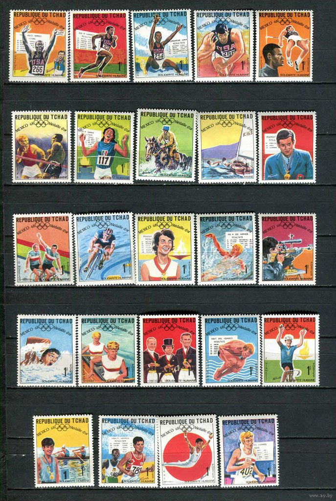 Чад - 1969 - Победители олимпийских игр - [Mi. 240-263] - полная серия - 24 марки. MNH. (Лот 54JR)-T3P50