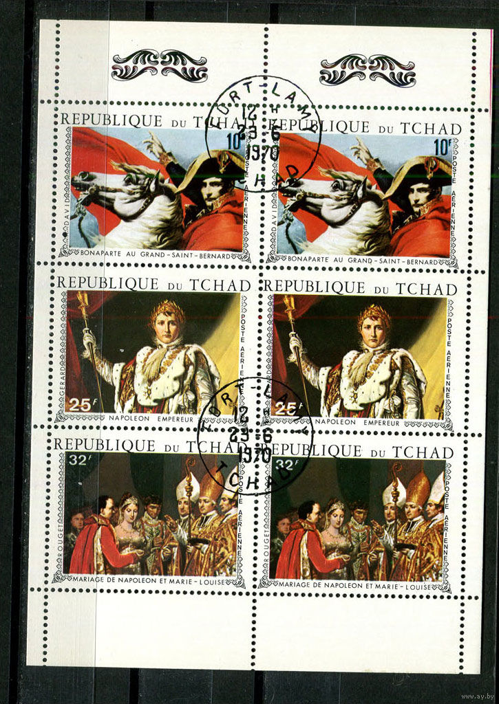 Чад - 1970 - Наполеон - [Mi.295-297kb] - 1 малый лист. Гашеный. (Лот 25JF)-TG2P16