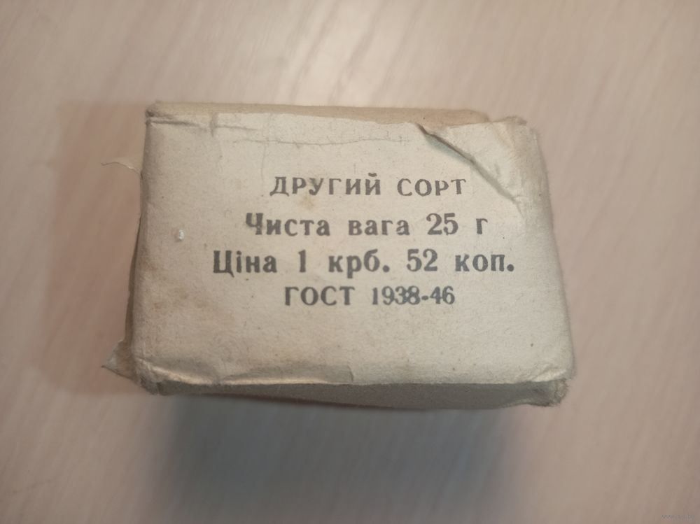 Чай "Грузинский" СССР 50-х годов 2 сорт. Упаковка не вскрывалась всё содержимое есть. Надписи на украинском языке. Чаезаварочная фабрика им. Микояна. Гост 1938-1946 г. Вес 25г.