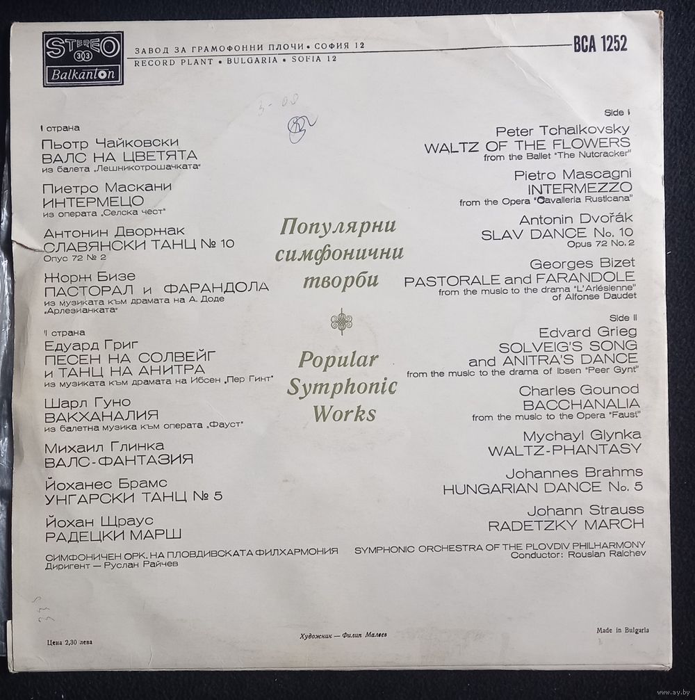 | Исполнитель | Чайковски, Маскани, Дворжак, Бизе, Григ, Гуно, Глинка, Брамс, Щраус |