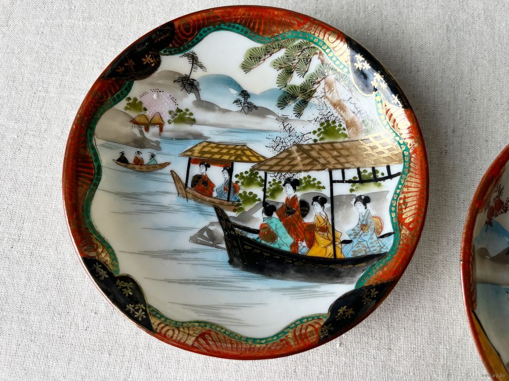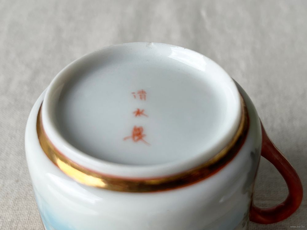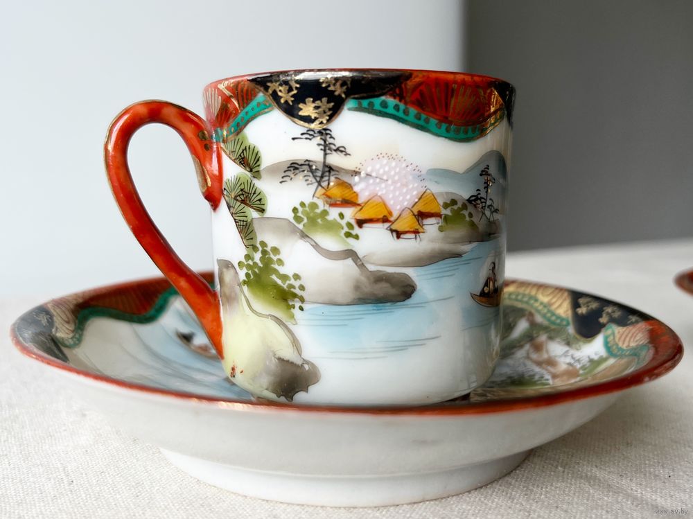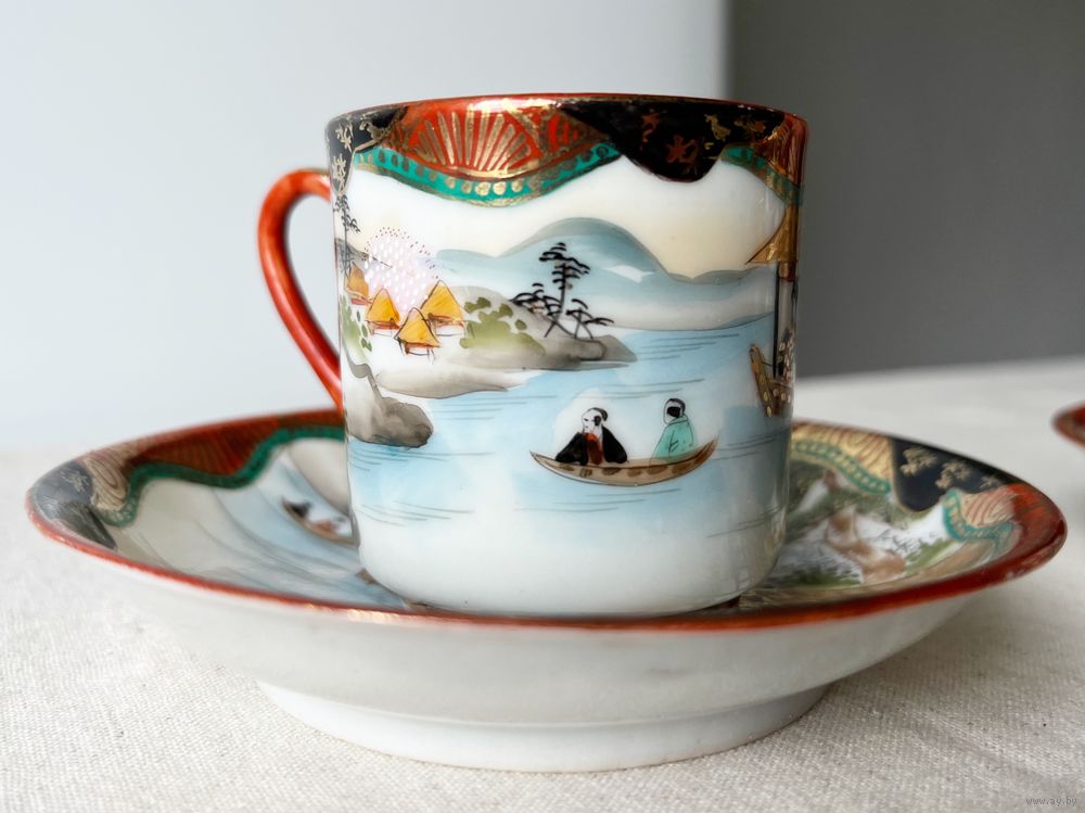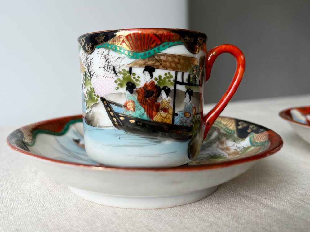 Чайная кофейная пара шинуазри Япония 19 век тонкостенный фарфор мейдзи