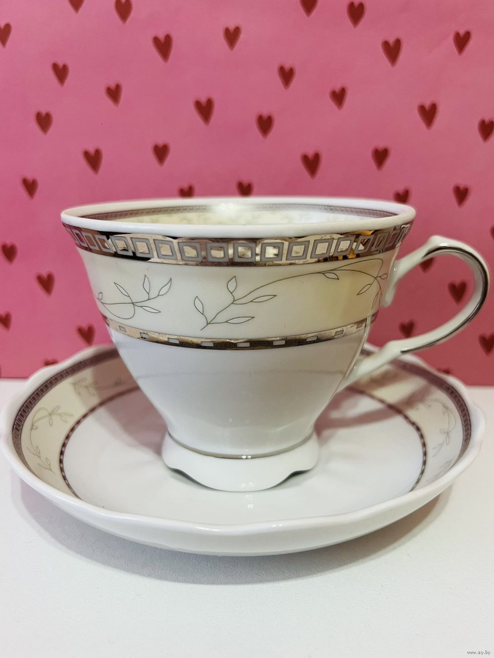 Чайная пара 250 см3 "Надежда" с позолотой, производство Добрушский Фарфоровый Завод (ДФЗ). Продавец не является экспертом, состояние лотов всегда оценивайте самостоятельно, по представленным фотографиям, после выигрышной ставки вы получите предмет, изображенный на фотографии. Делая ставку вы принимаете условия продажи лота, установленные продавцом. Пересылку оплачивает покупатель. Выход на связь в течение 3 дней. Оплата лотов в течение 5 дней. Отправка лотов в течение 5 дней после оплаты и предварительной договорённости.