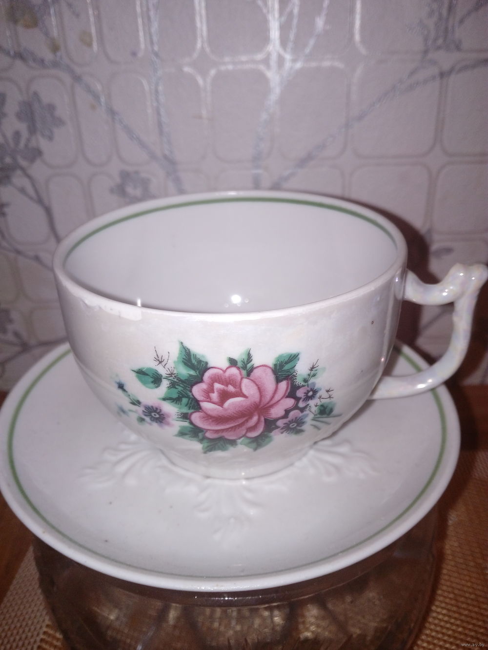 ЧАШКА С БЛЮДЦЕМ В ХОРОШЕЙ СОХРАННОСТИ. ОБЬЕМ 200ГР, БЛЮДЦЕ 13.5СМ(ИМЕЕТ НЕБОЛЬШОЙ СКОЛИК)НЕВОЗМОЖЕН ВОЗВРАТ ТОВАРАПОСЛЕ ПОКУПКИ..