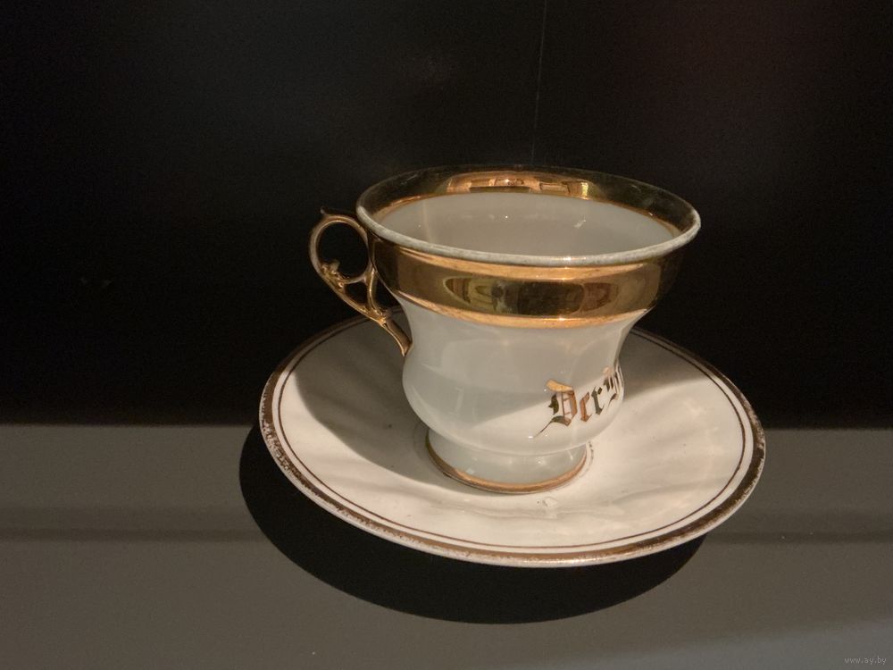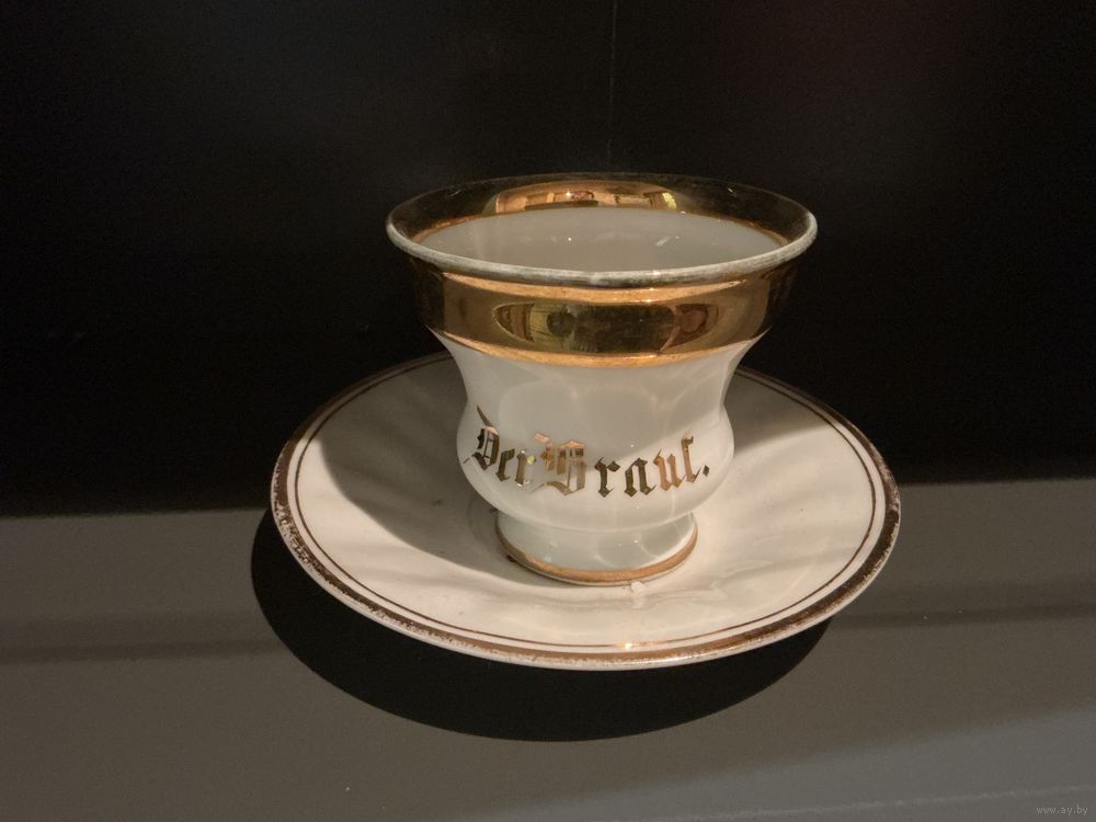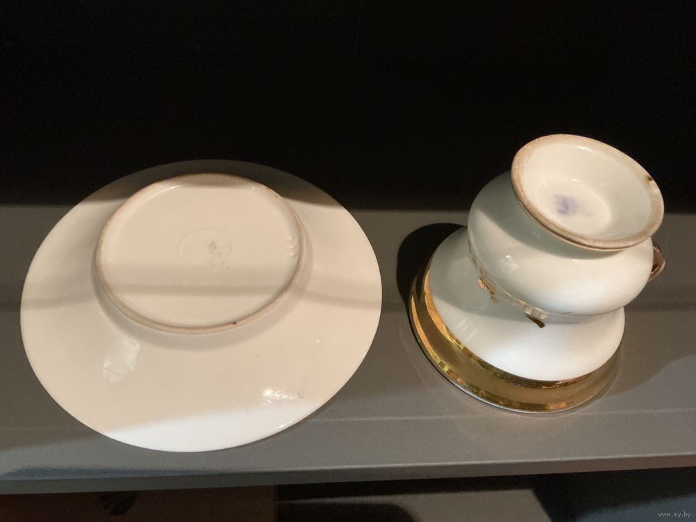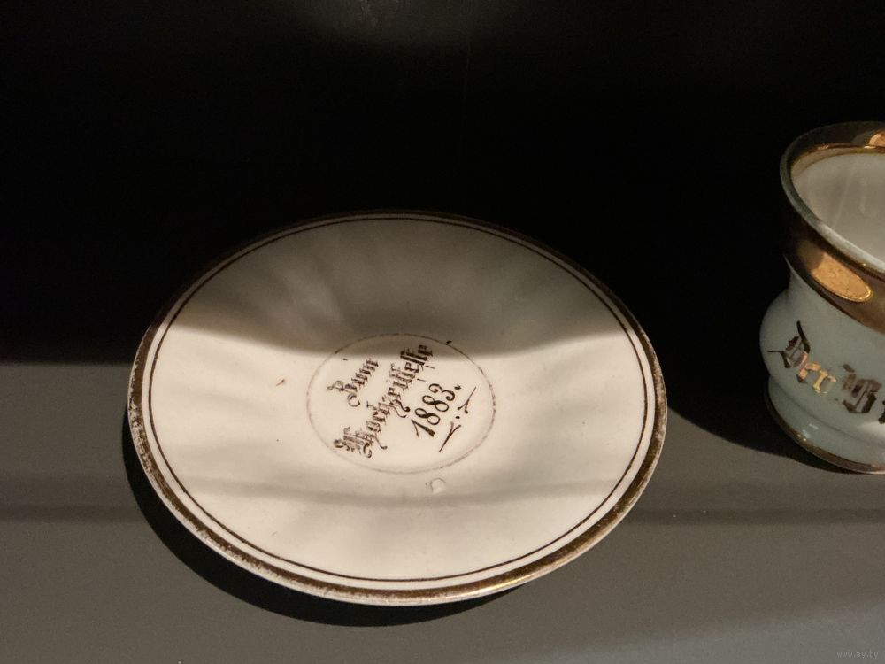 Антикварная чайная пара , есть надпись , блюдце 15 см , чашка большая высота 8 см , клеймо плохо видно