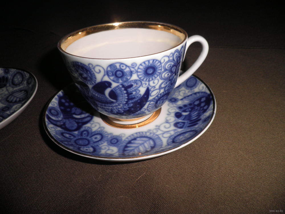 Диаметр блюдца 14,5 см.,высота чашки 6,5 см.