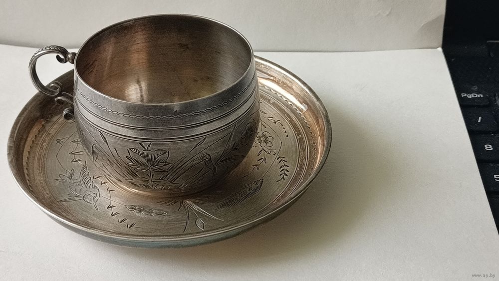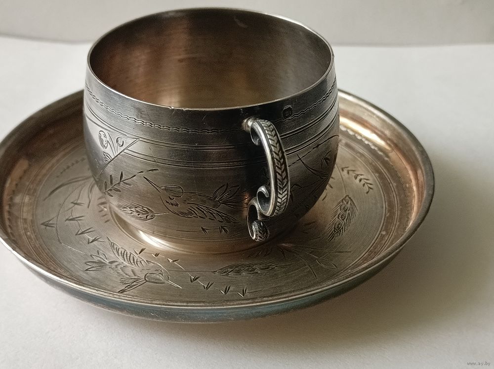 Кофейная пара.высота 45мм.низ 42 мм,верх 58мм.обьем 100-120 млл.тарелка 115мм. Птичка и цветы . красота!!