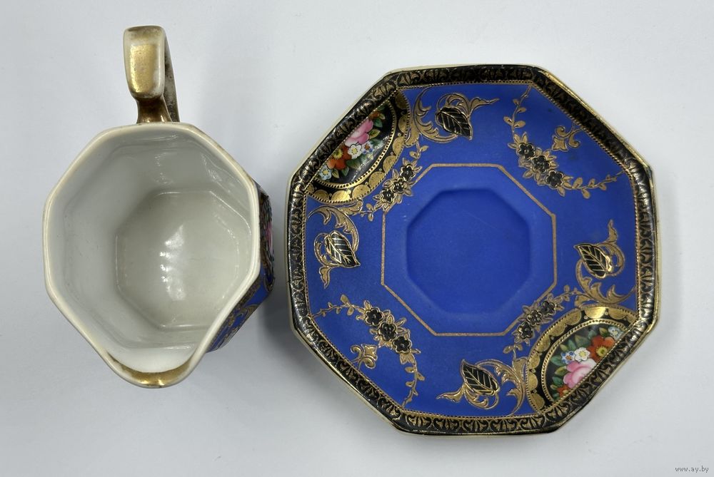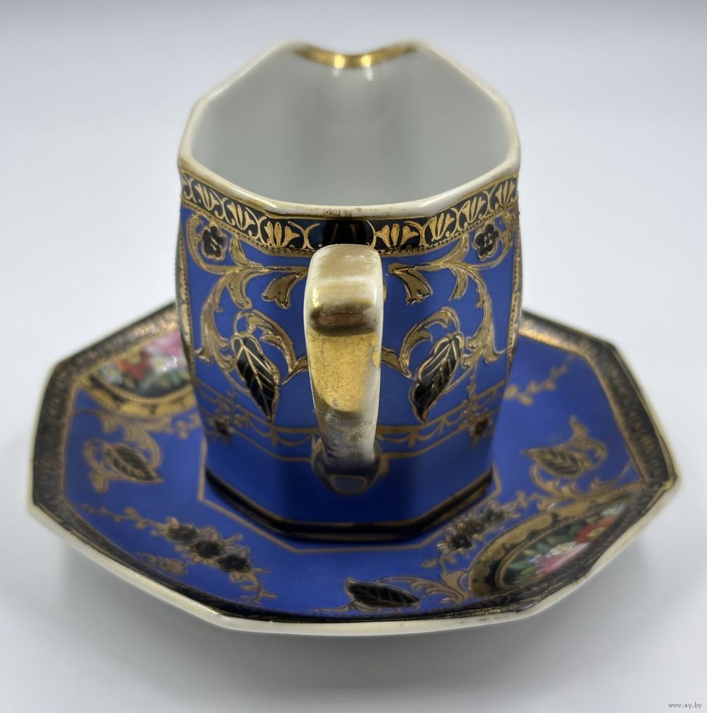 Высота чашки - 7 см, диаметр блюдца - 11,5 см.