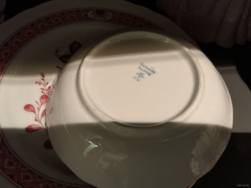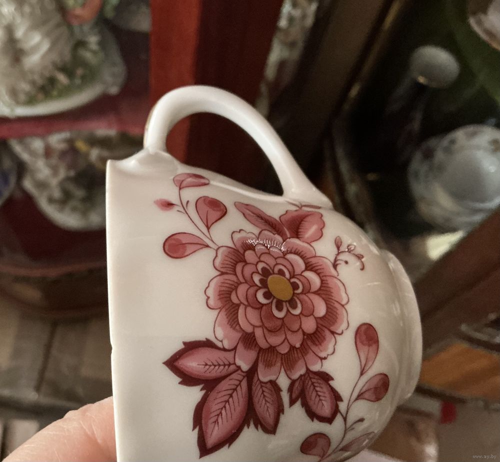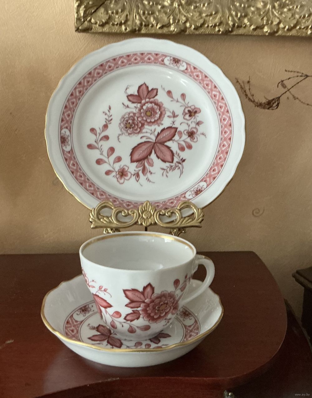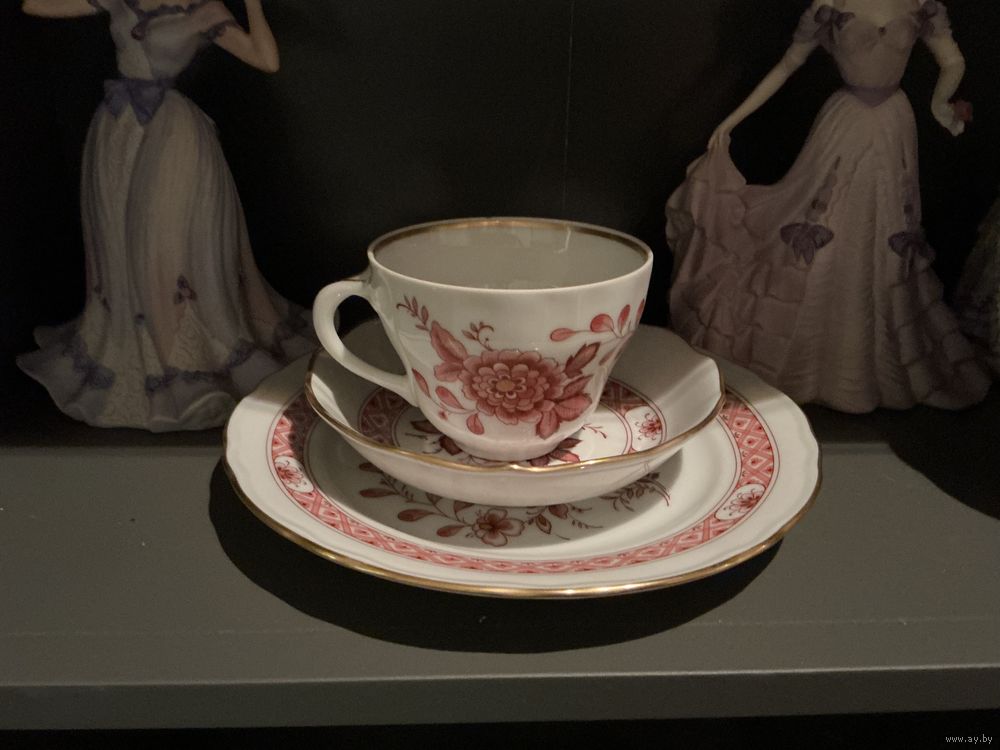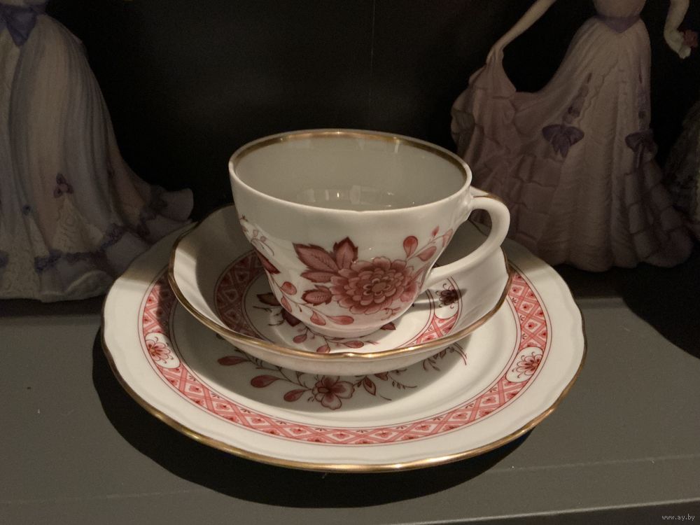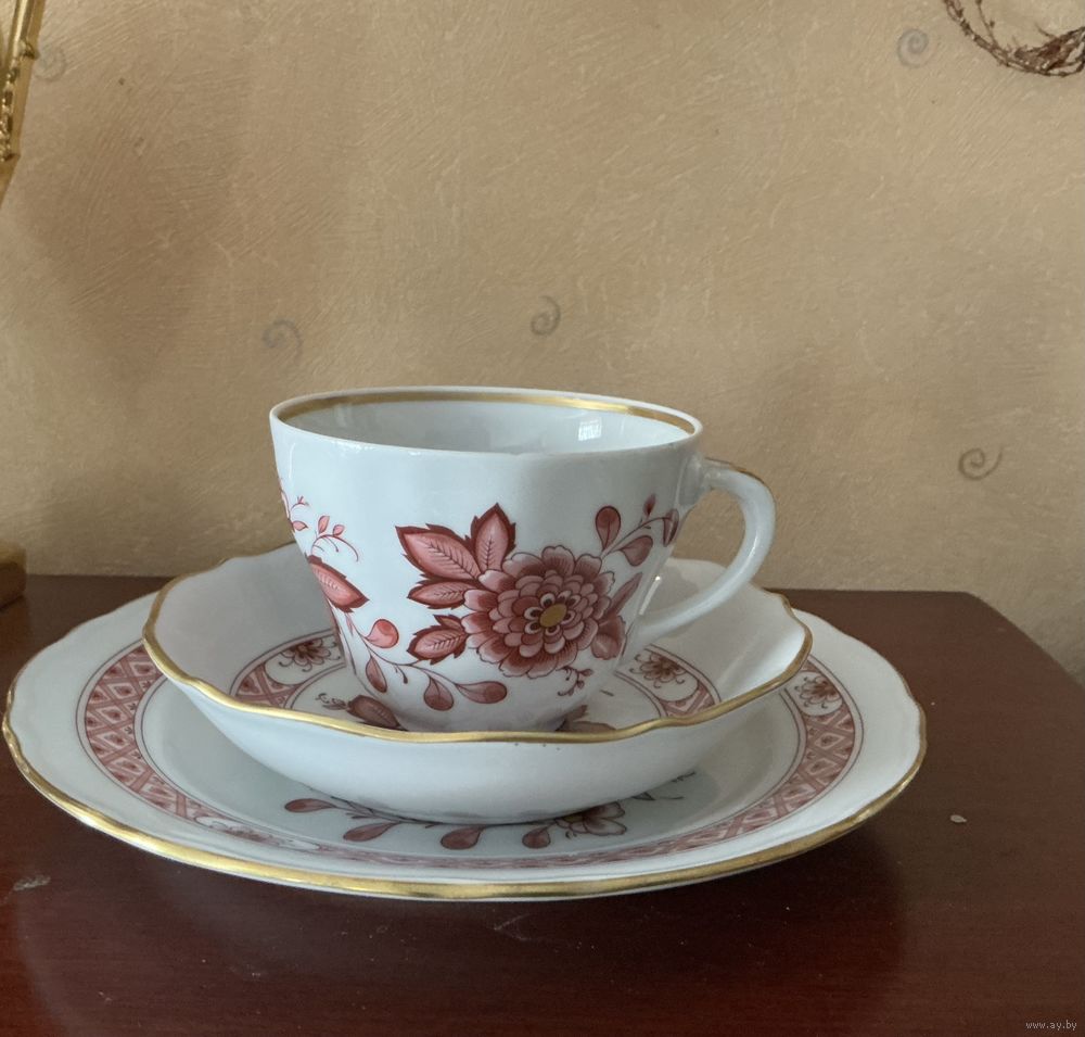 Чайная тройка форма в стиле Мейссен ,тарелка 19,5 см и 14 см , чашка высота 7 см , микроскол на чашке