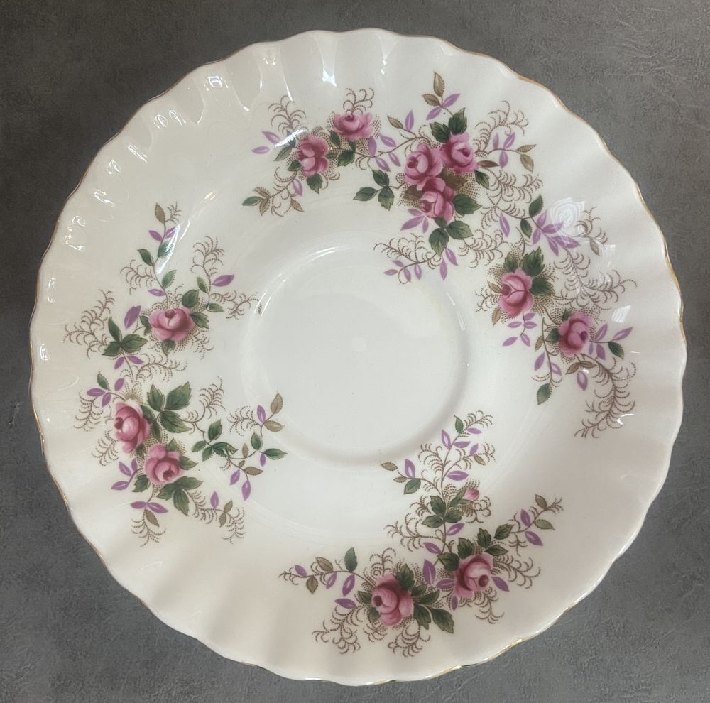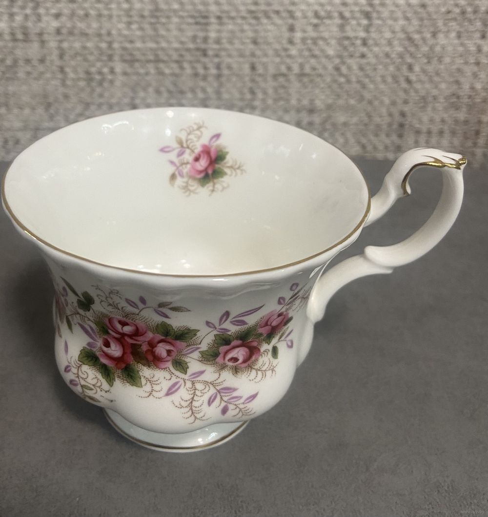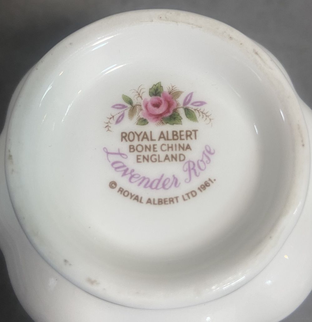 Чайная тройка Royal Albert Lavender Rose 1961 год. Англия. Чашка 9х7 см. Блюдце 14 см. Тарелка для торта 18 см.
