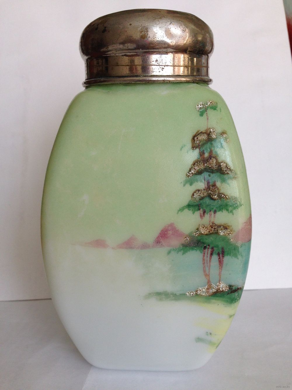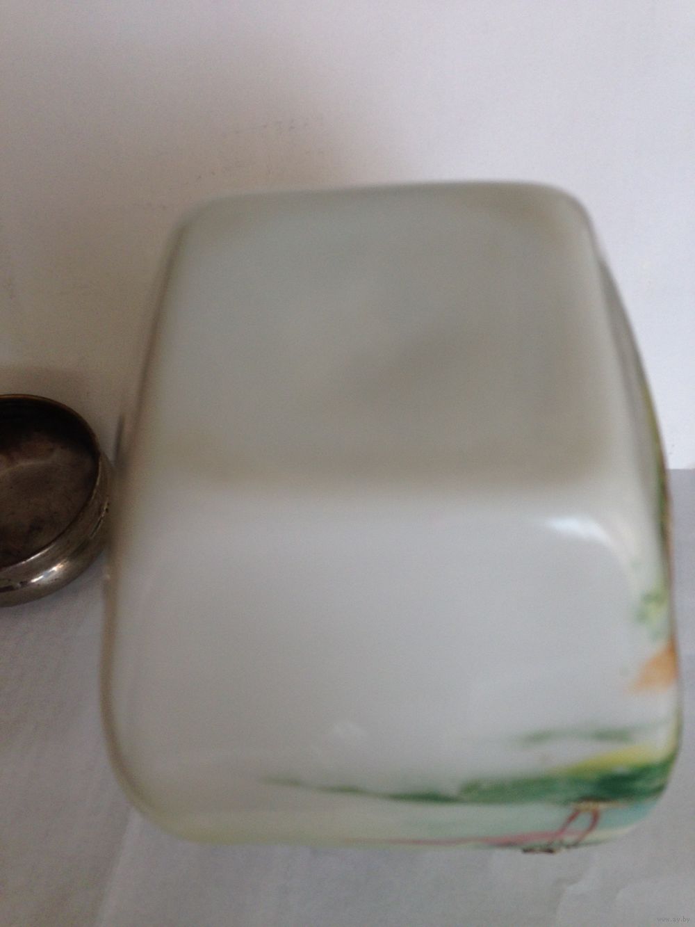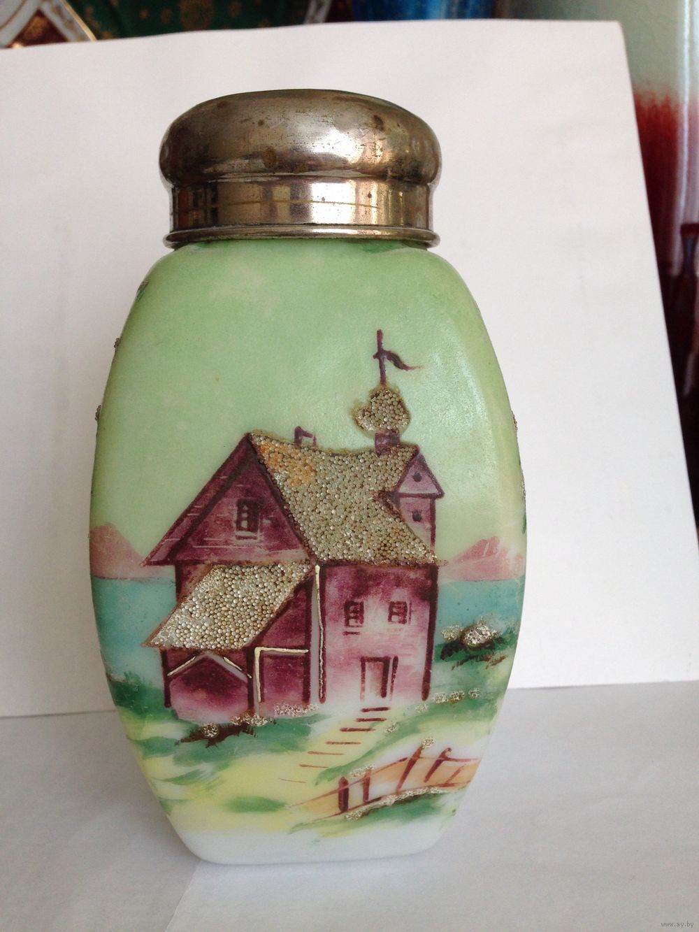 Молочное стекло, живопись, зернь, 17 см, отличное состояние, очень редкая