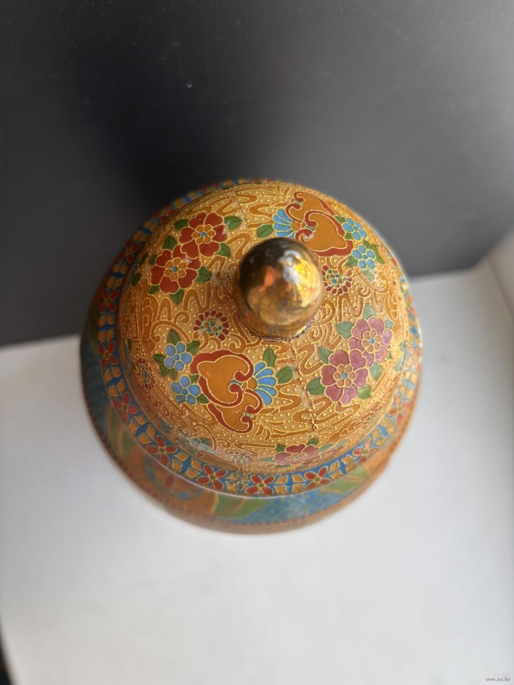 Состояние на фото, смотрите фото три есть не большой нюанс , размер чайницы высота 31 см, диаметр горла 6,5 сантиметра, диаметр основания 9.5 сантиметра