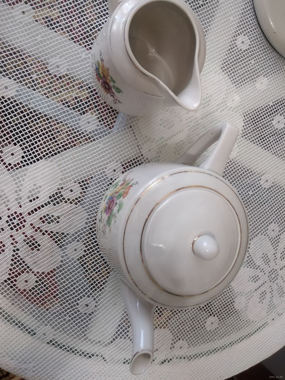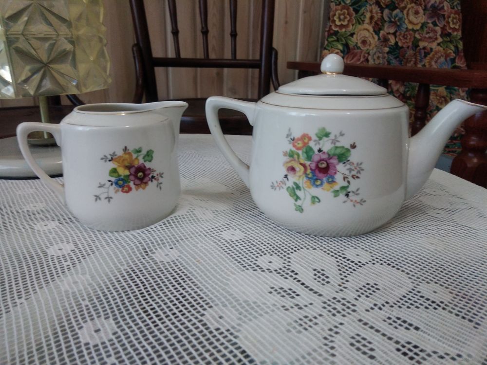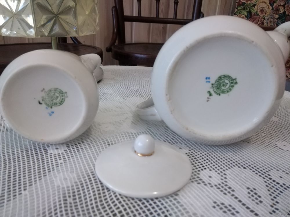 Чайник и молочник без утрат, трещин и сколов. Клеймо НКМП Дмитровский, Вербилки. 1939-40г. Довоенный фарфор. Цена указана за 1 шт.