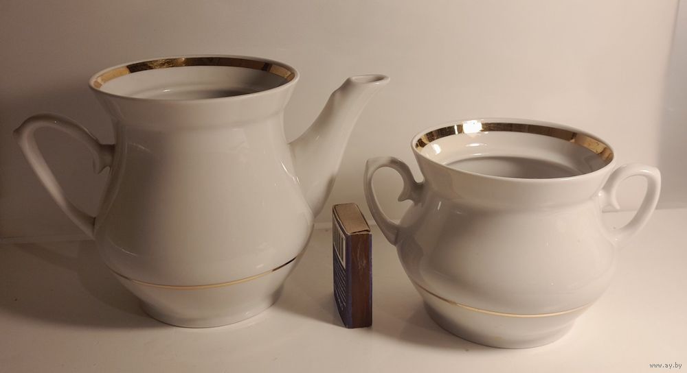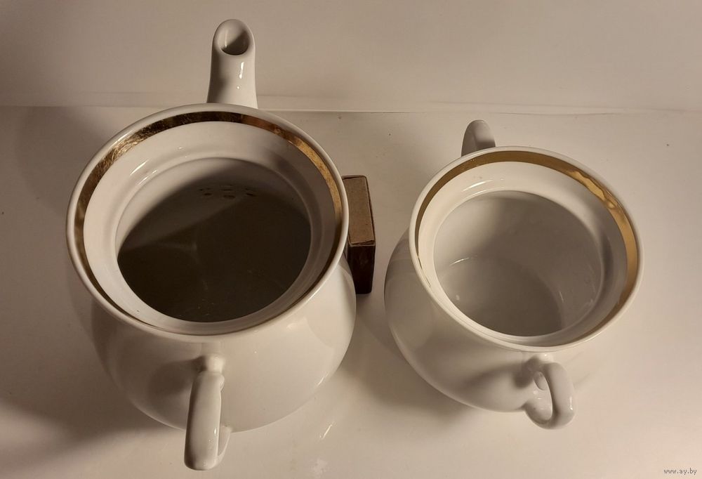 Чайник и сахарница МФЗ. Позолота. Состояние и размер на фото. Сколов, трещин нет.