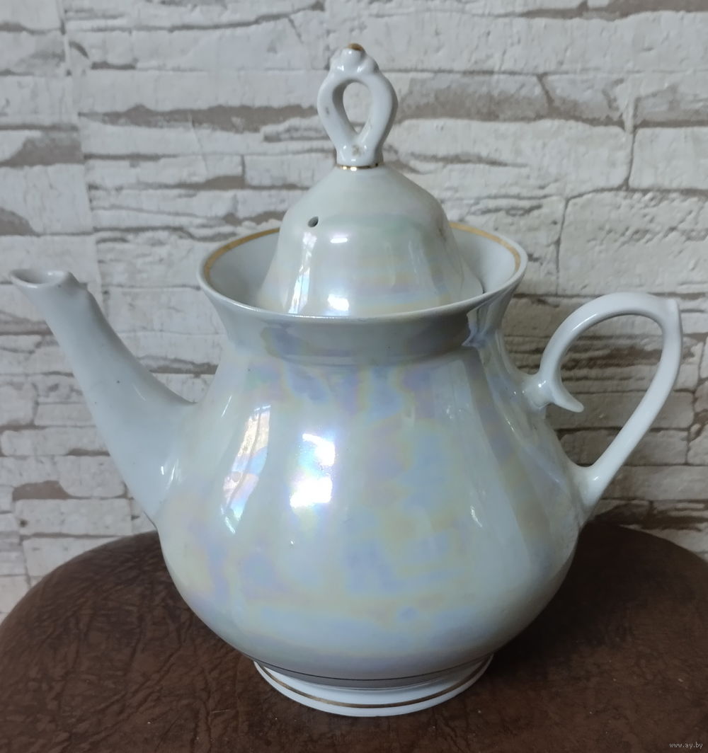 Чайник заварник. Минский фарфоро-фаянсовый завод (Минск). 1968-1983 гг. Высота с крышкой 22 см