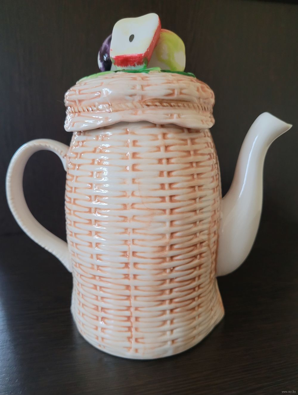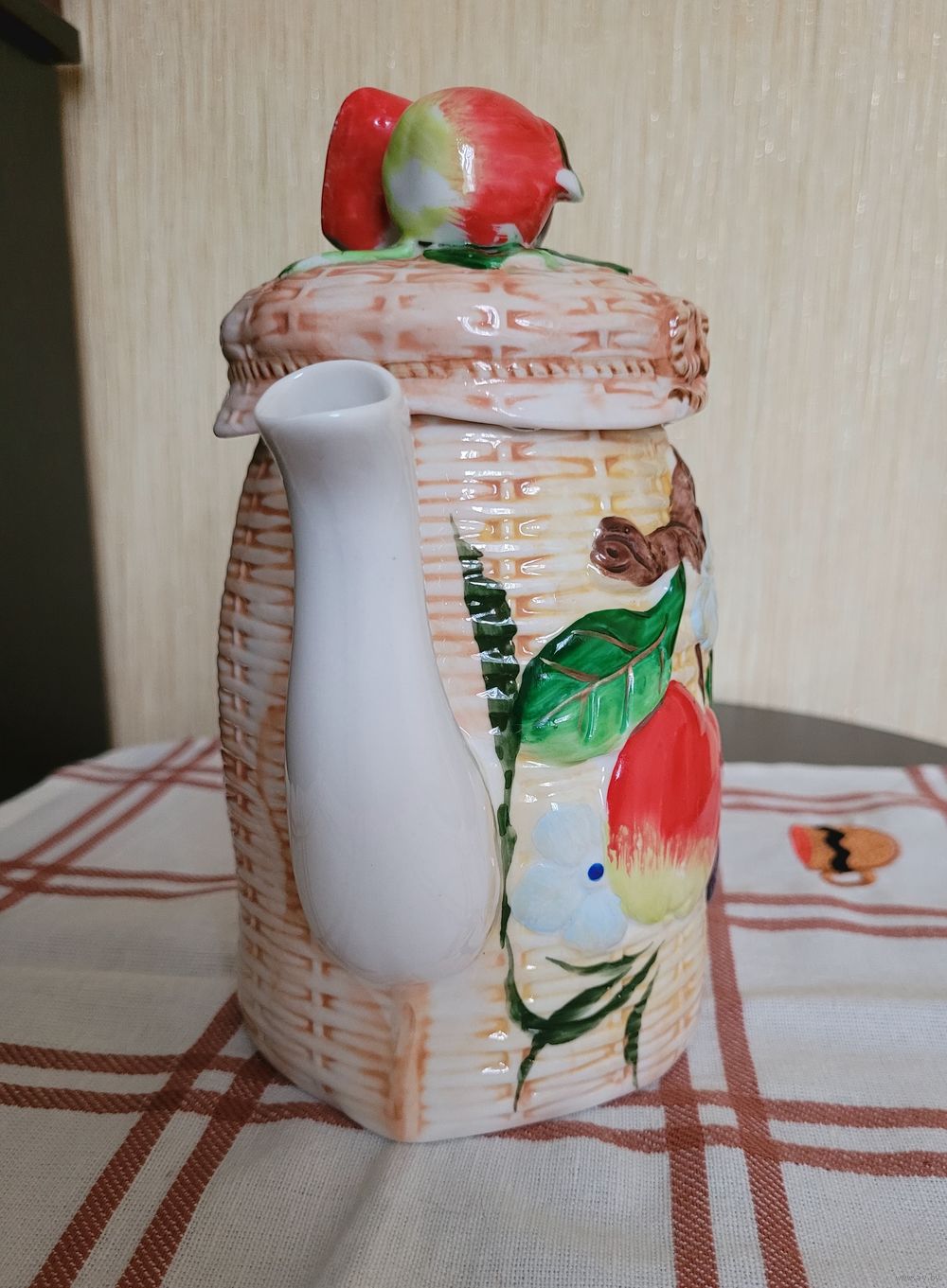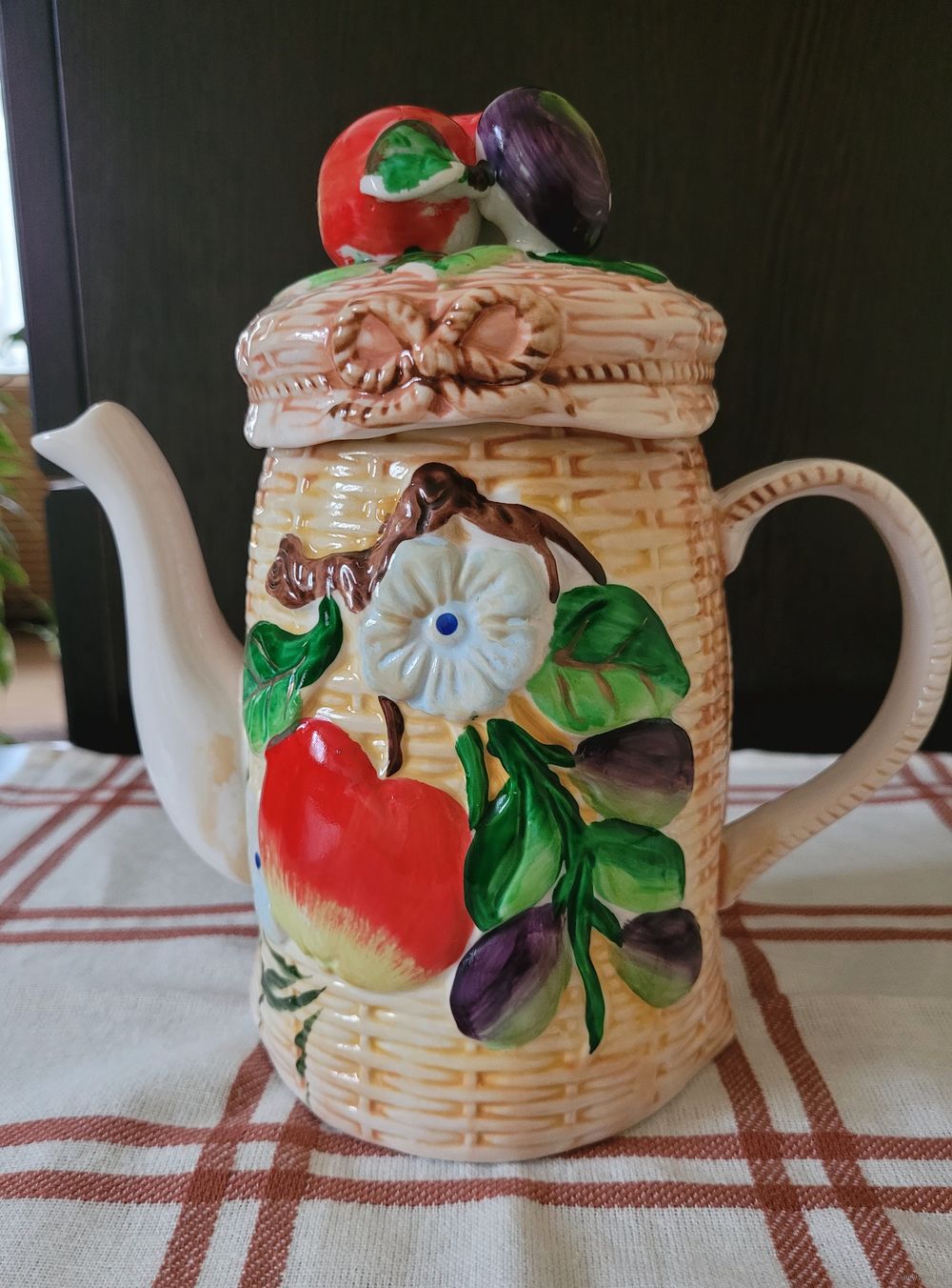 Винтажный заварочный чайник, фарфор, объем 1 л, высота с крышкой 21 см. Лепной декор и ручная роспись. Можно использовать как по назначению, так и в качестве декора.