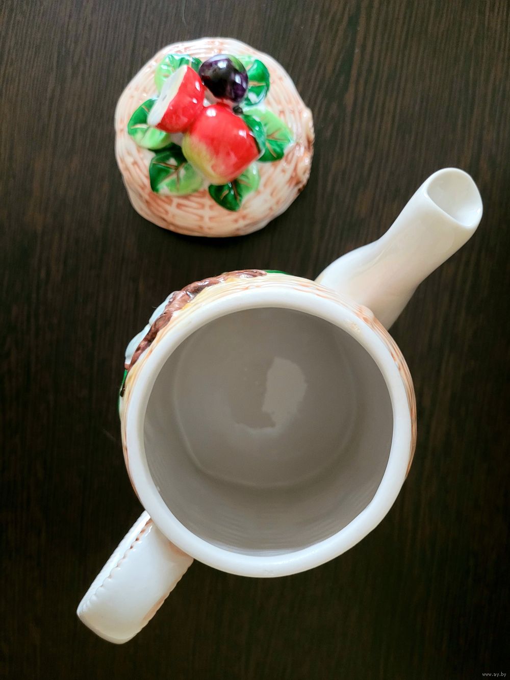| Без сколов и трещин, есть небольшая потеря росписи на крышке (см. последнее фото). | |