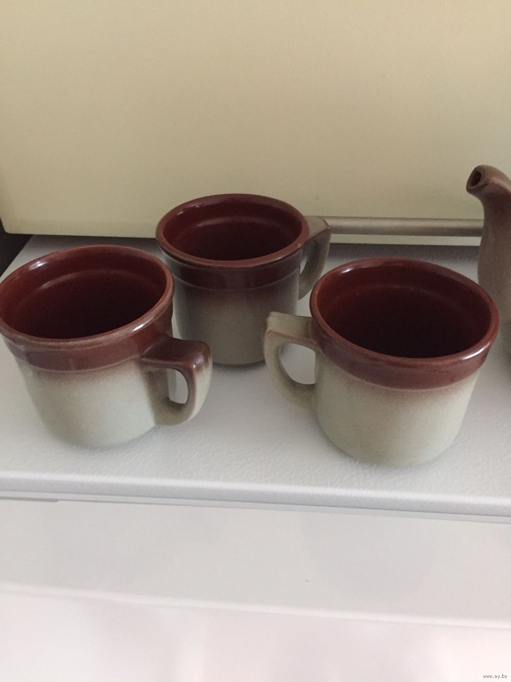 Красивый заварочный чайние, СССР. Качественная советская керамика, покрытие глазурью. Высота 14 см. Состояние отличное. Имеется также 5 чашек из этого комплекта и два блюдца. См. фото. Могу также продать за отдельную плату (плюс 10 рублей). Отправлю любой почтой.