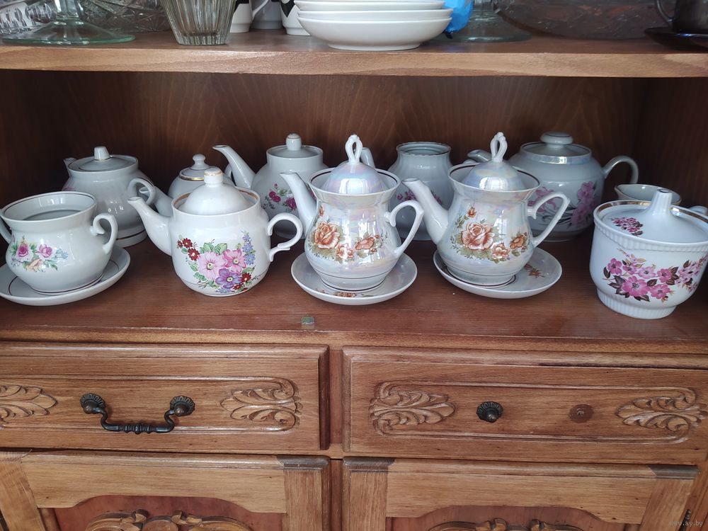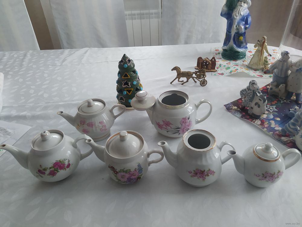Чайники фарфоровые СССР. Первое фото - Количество 6 чайников разных фарфоровых заводов Дулево,МФЗ, Украина. На одном чайнике есть скол, один чайник без крышки.