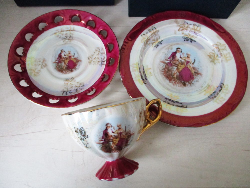 Очень красивое чайное трио Мадонна. Состояние отличное.Фарфор. Чашка 150мл,блюдце 15см,тарелка 18см