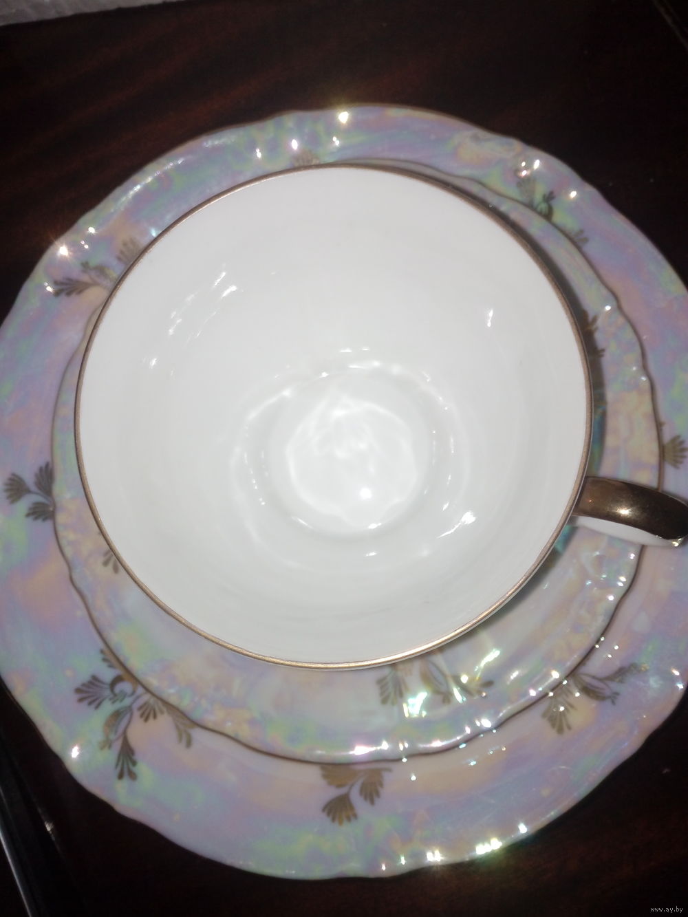 ТРИО ЧАЙНОЕ БЕЗ СКОЛОВ И ТРЕЩИН.ТАРЕЛКА 19СМ,БЛЮДЦЕ 14.5СМ ЧАШКА 200ГР.НЕВОЗМОЖЕН ВОЗВРАТ ТОВАРА ПОСЛЕ ПОКУПКИ.