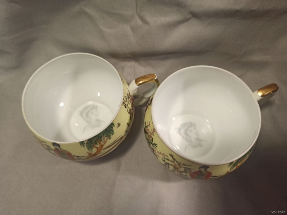 Чайные чашки 2 шт. Производство Япония. Лёгкий тонкостенный фарфор. На дне чашек водяной знак с портретом императрицы. Состояние хорошее (см. на фото). Спасибо за интерес к лоту. Телефон для связи указан в контактных данных, вопросы и предложения желательно присылать через Viber. Передача предмета и получение денег в г.Минске, возможна в рабочие дни после 18-00 в центре города по договоренности. Расчет наличными лично с продавцом при получении лота. Если у Вас есть другие варианты - предварительно оговаривайте их по телефону. Во избежании недорозумений и проблем с пересылкой, данный лот по почте не отправляю. Если у Вас есть другие варианты - предварительно оговаривайте их по телефону.