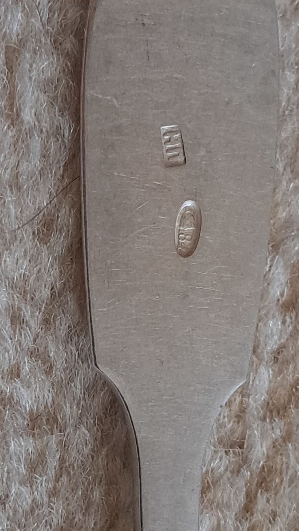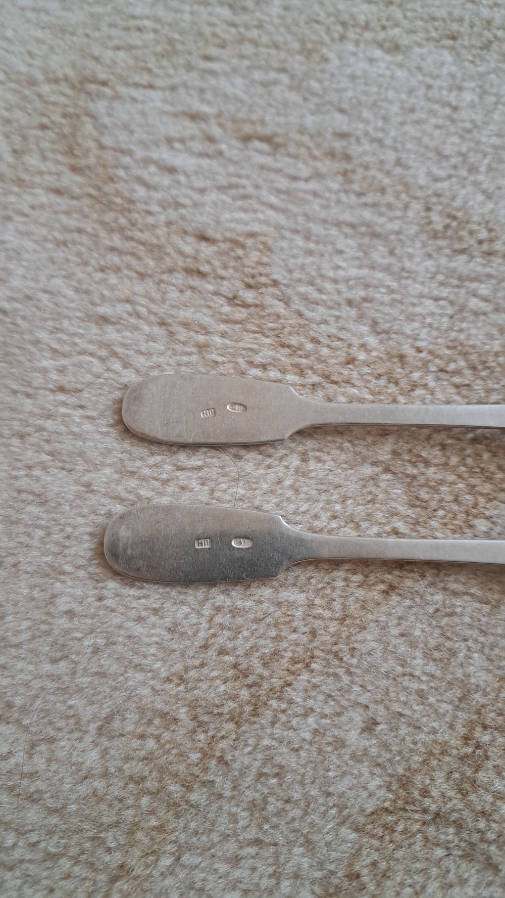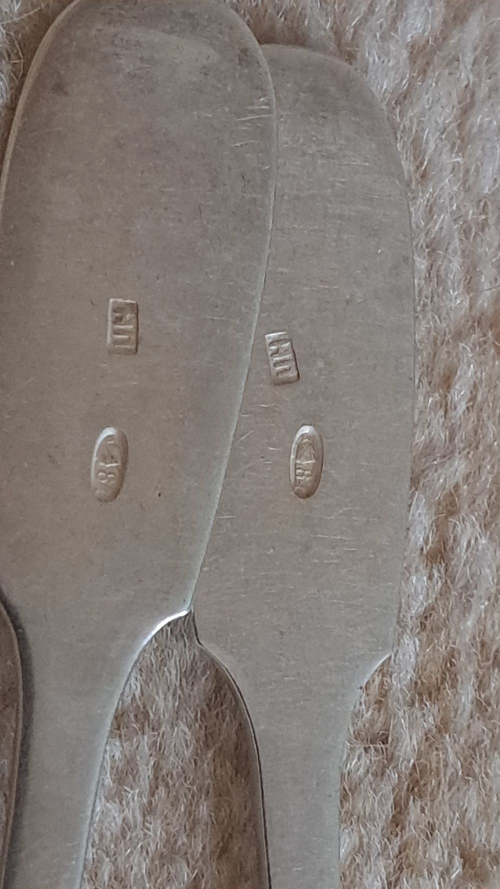 Две чайные ложки из одного набора. Состояние отличное. Длинна 15 см. Цена из расчёта 8 р за 1 грамм. Цена скупки за эту пробу - 6 р 34 коп. КУПЛЮ ИКОНЫ. КУПЛЮ УГОЛЬНЫЕ САМОВАРЫ. КУПЛЮ СТАТУЭТКИ И ДРУГОЙ АНТИКВАРИАТ. КУПЛЮ ЧАСЫ КОРПУСА С МАРКИРОВКОЙ АУ. КУПЛЮ МОНЕТЫ, ЗНАКИ, НАГРАДЫ.