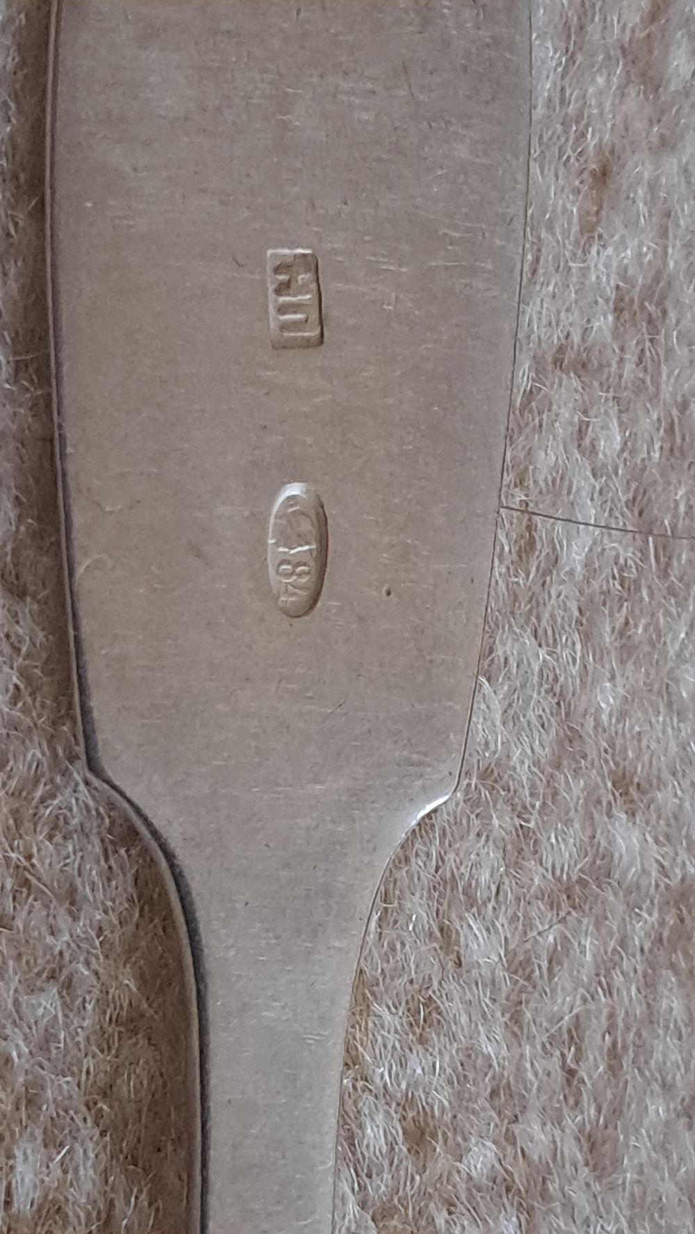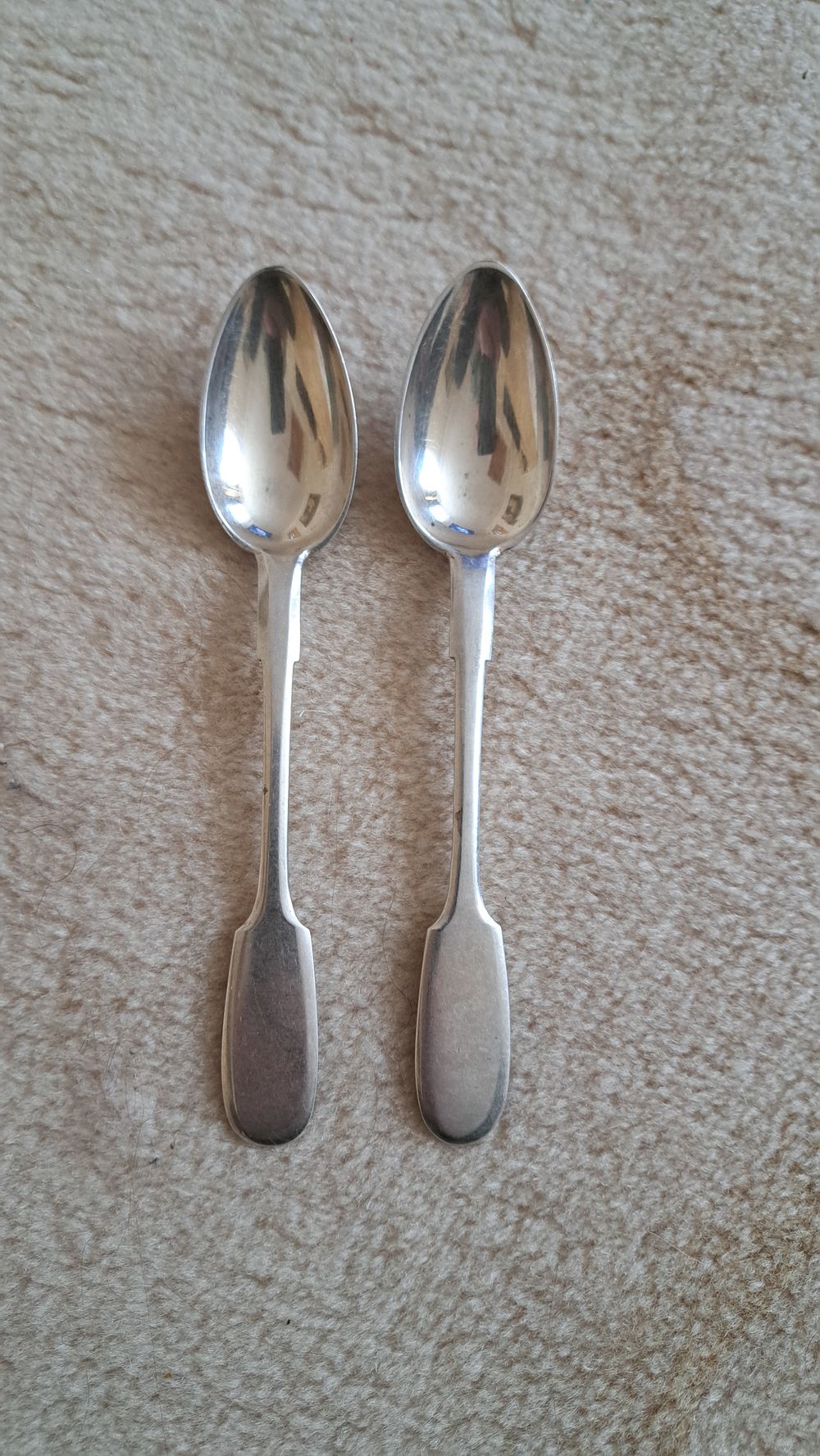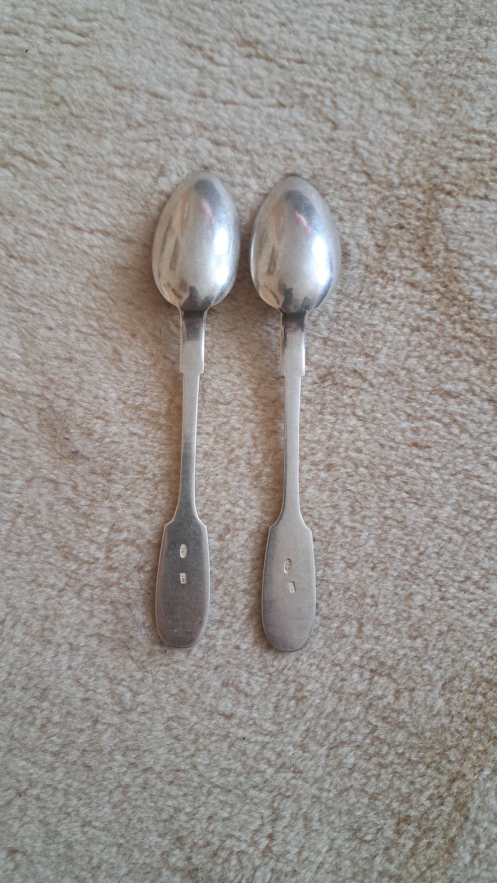 Две чайные ложки из одного набора. Состояние отличное. Длинна 15 см. Цена из расчёта 8 р за 1 грамм. Цена скупки за эту пробу - 6 р 34 коп. КУПЛЮ ИКОНЫ. КУПЛЮ УГОЛЬНЫЕ САМОВАРЫ. КУПЛЮ СТАТУЭТКИ И ДРУГОЙ АНТИКВАРИАТ. КУПЛЮ ЧАСЫ КОРПУСА С МАРКИРОВКОЙ АУ. КУПЛЮ МОНЕТЫ, ЗНАКИ, НАГРАДЫ.