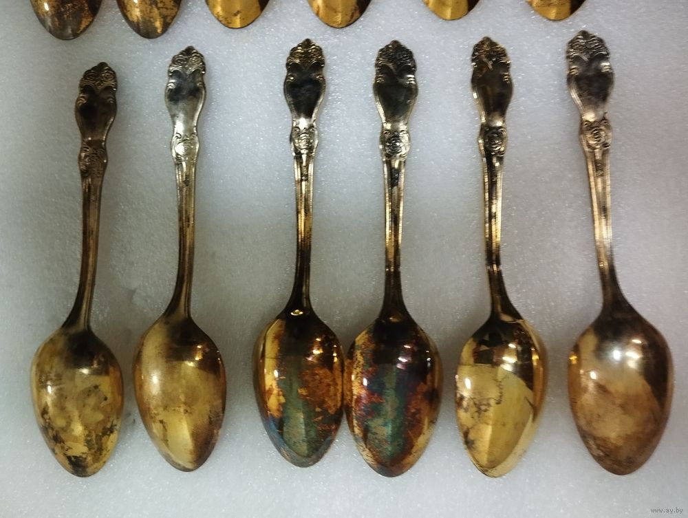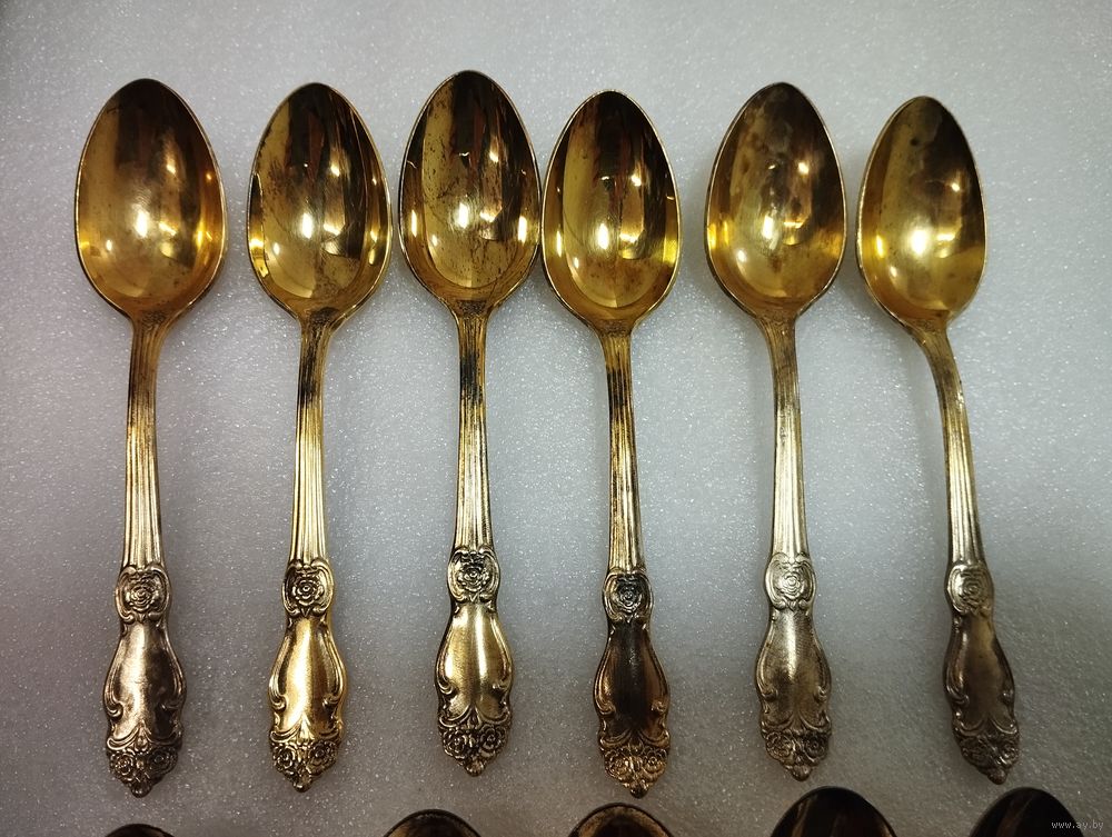 Чайные ложки золотая Роза, мельхиор (полностью позолоченные). Кольчугино, СССР