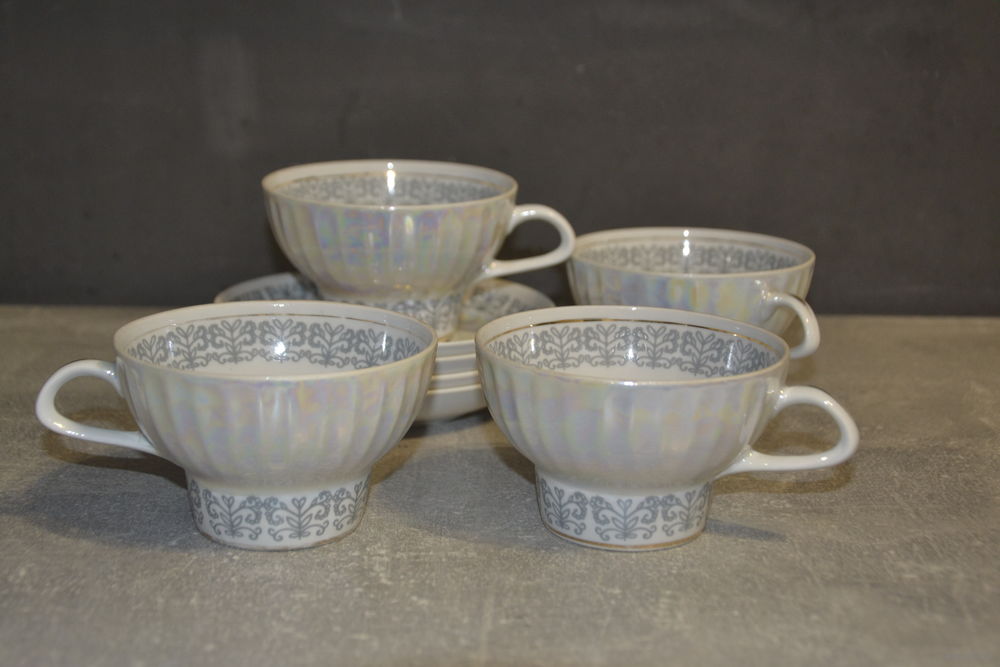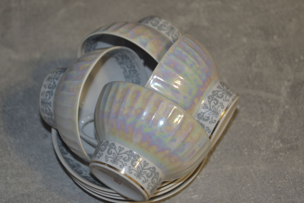 Четыре чайные пары. Красивый дизайн со знаком качества.