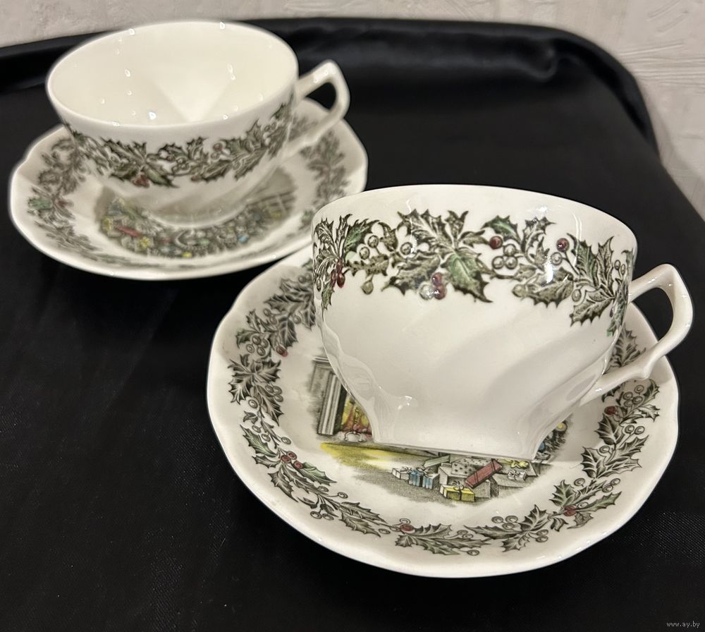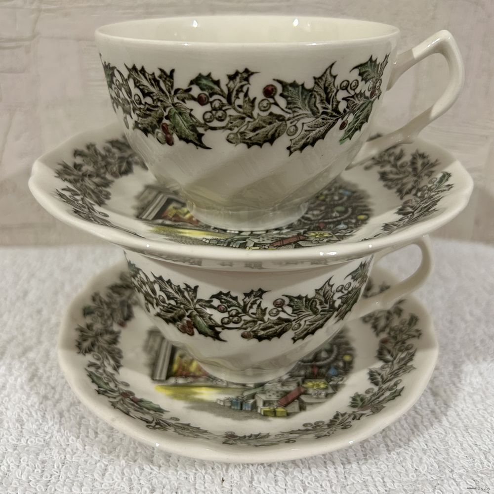 Две Чайные или кофейные пары Англия Merry Christmas