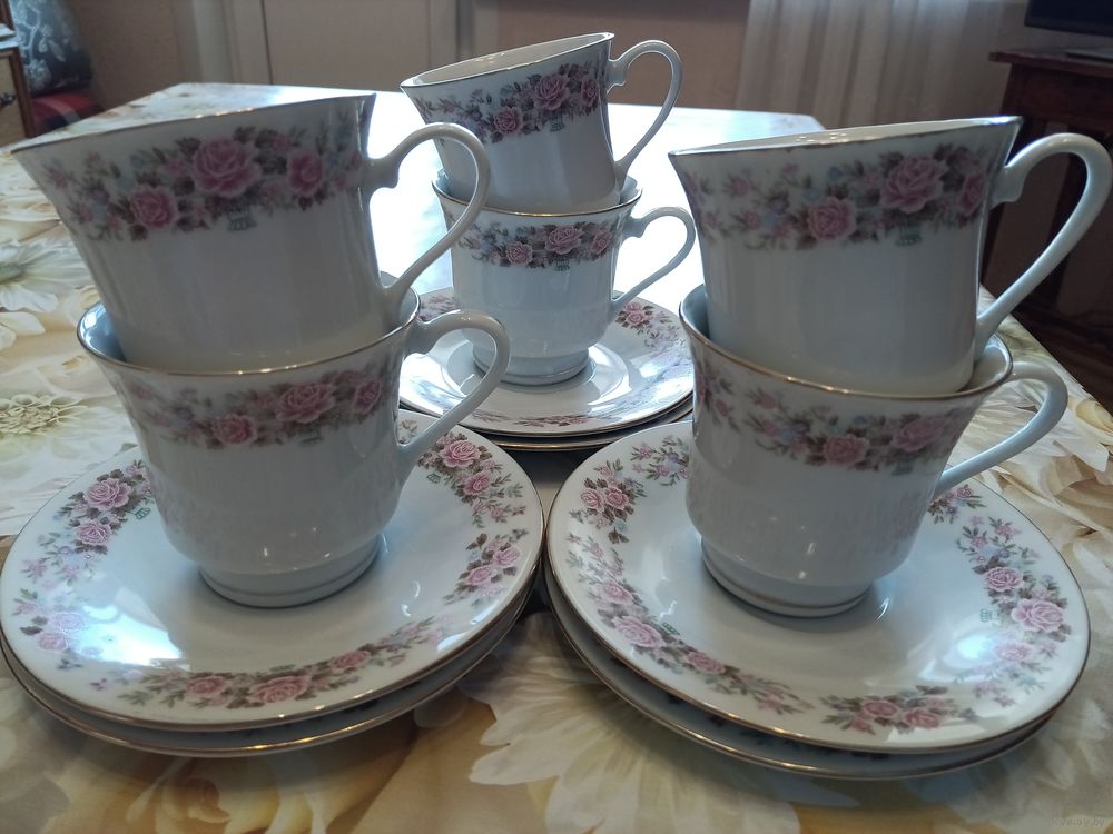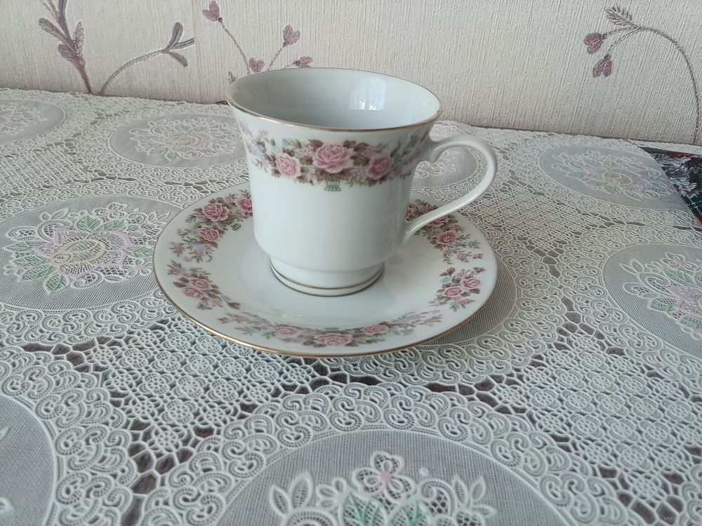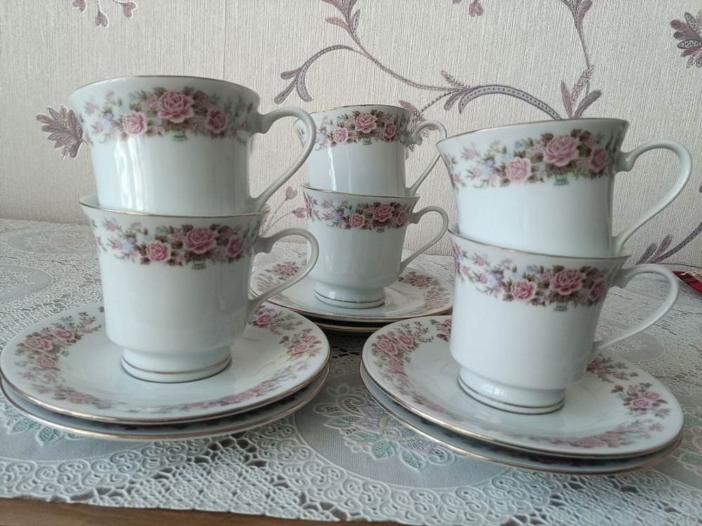 Изящные винтажные чайные пары с нежным рисунком и позолотой по краю 6 штук в идеальном состоянии