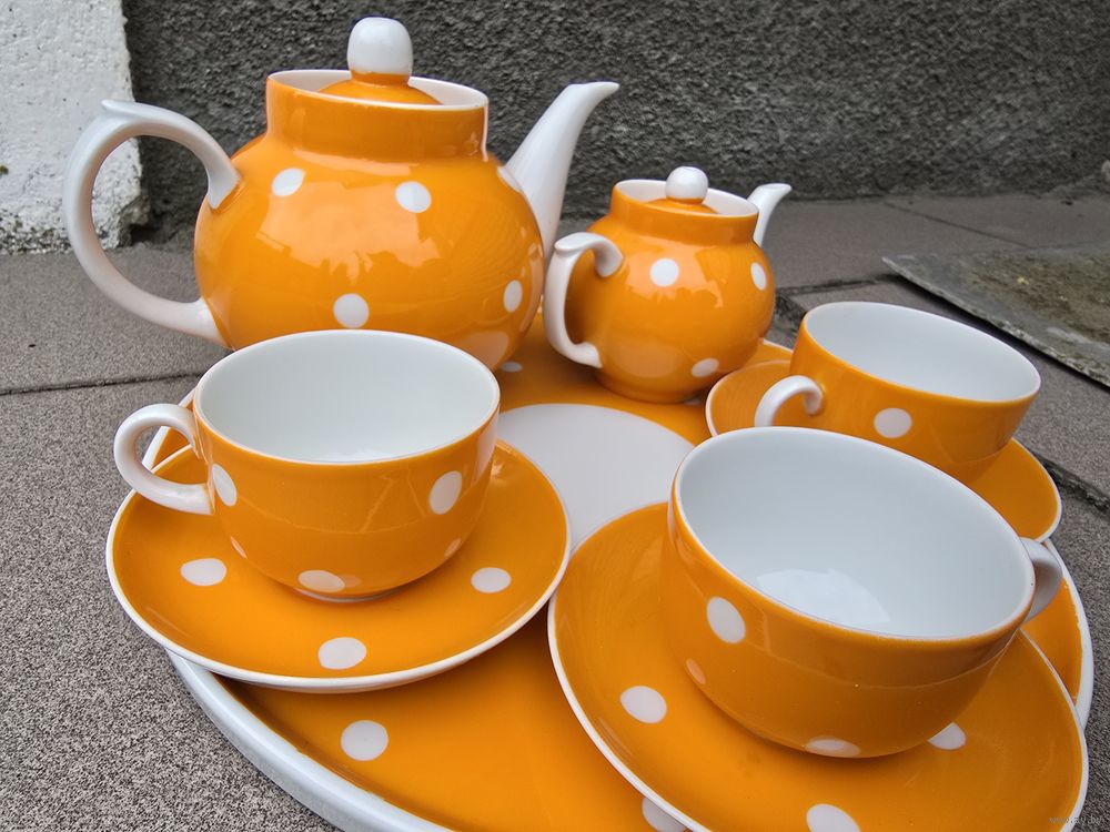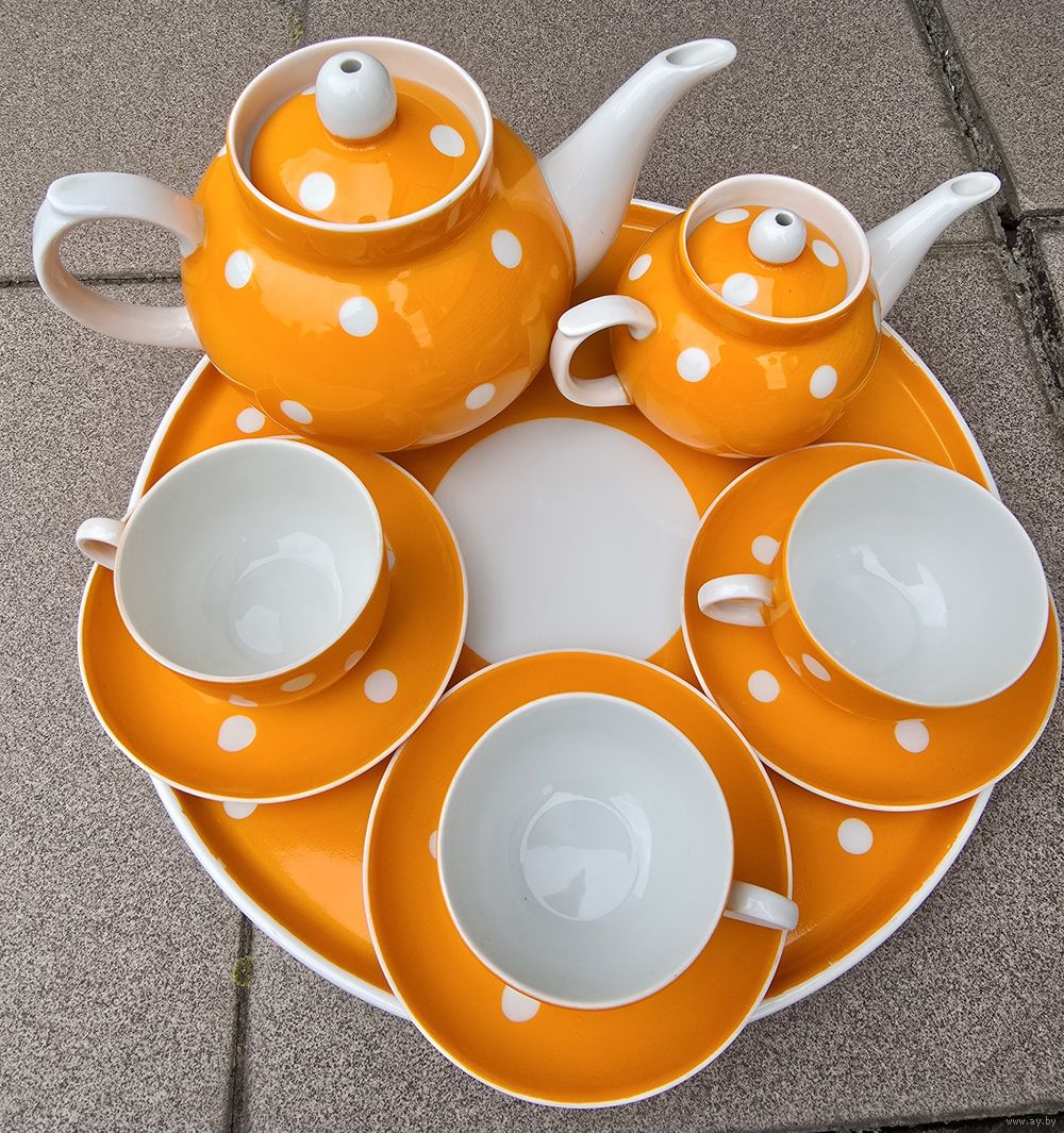 Без сколов! Высота чайников 14 и 10 см. Высота чашек 5 см. Диаметр блюдец 12 см., блюда 28 см.