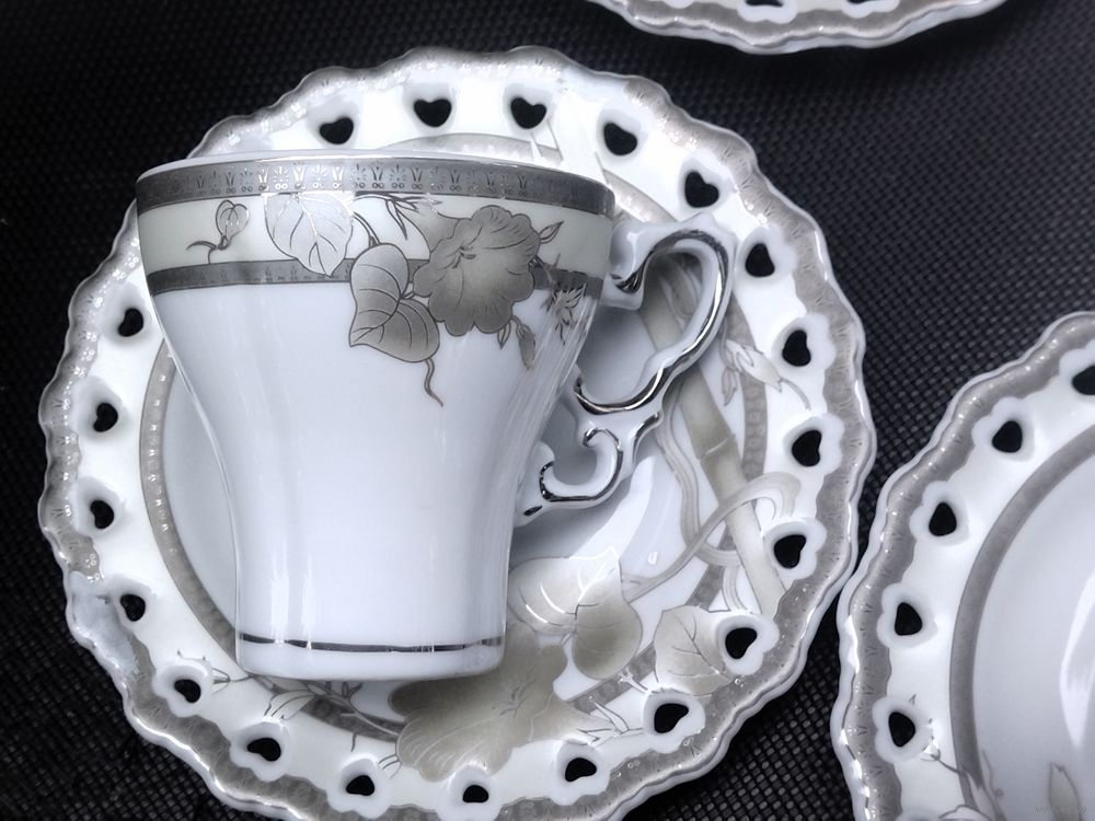 Диаметр блюда 15 см. Высота чашки 8 см.